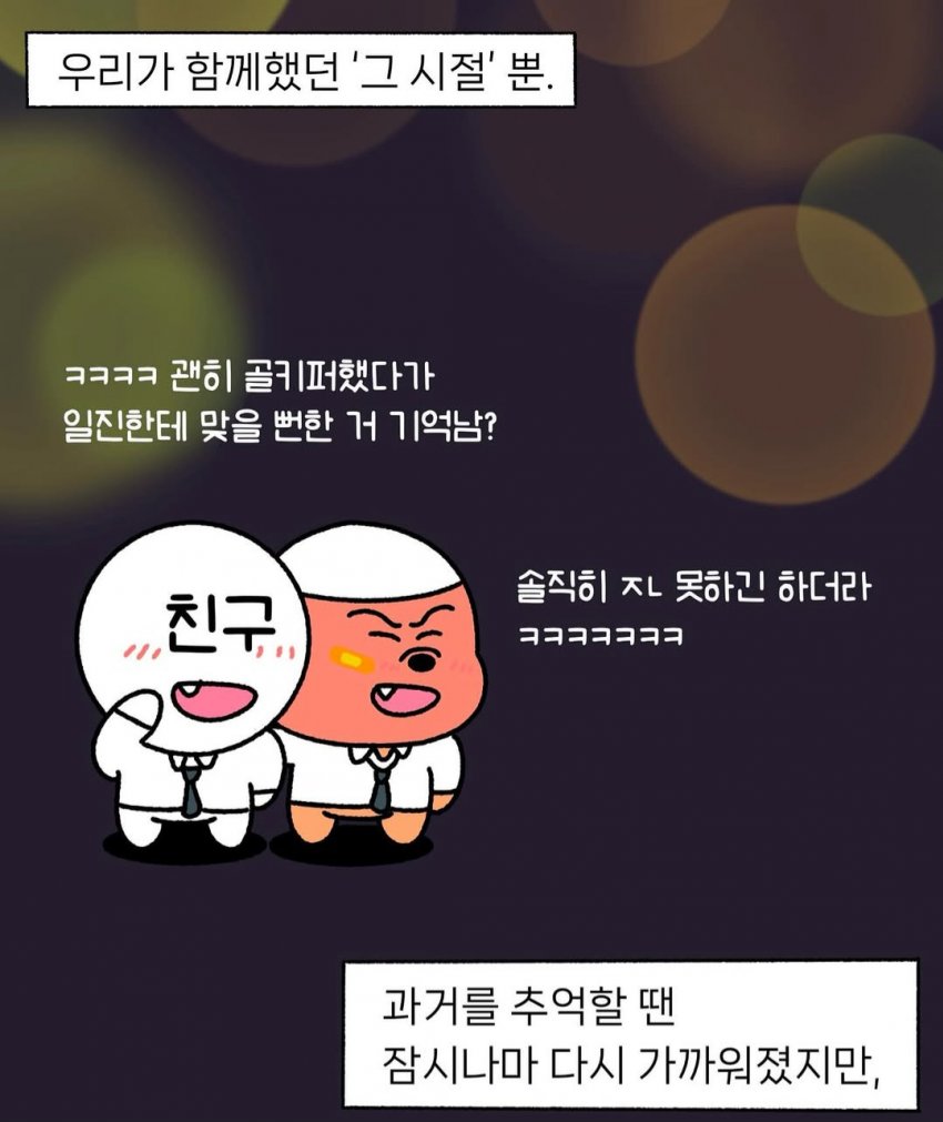 같은 과거를 공유하는데 현재와 미래가 극명히 나뉜다?그건 같은 과거를 공유한다고 착각하고 있는것뿐임앰생같은 학창시절 보낼때 친구들은 미래를 준비하고 남은 시간을 공유한것