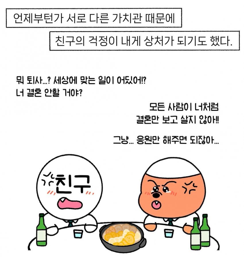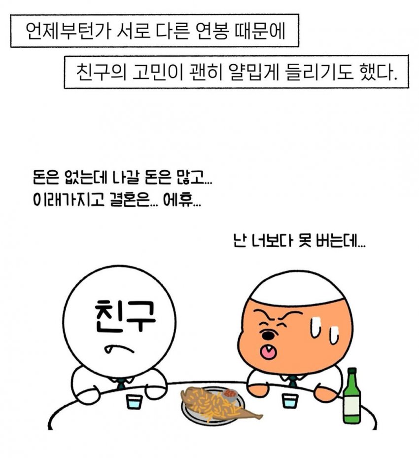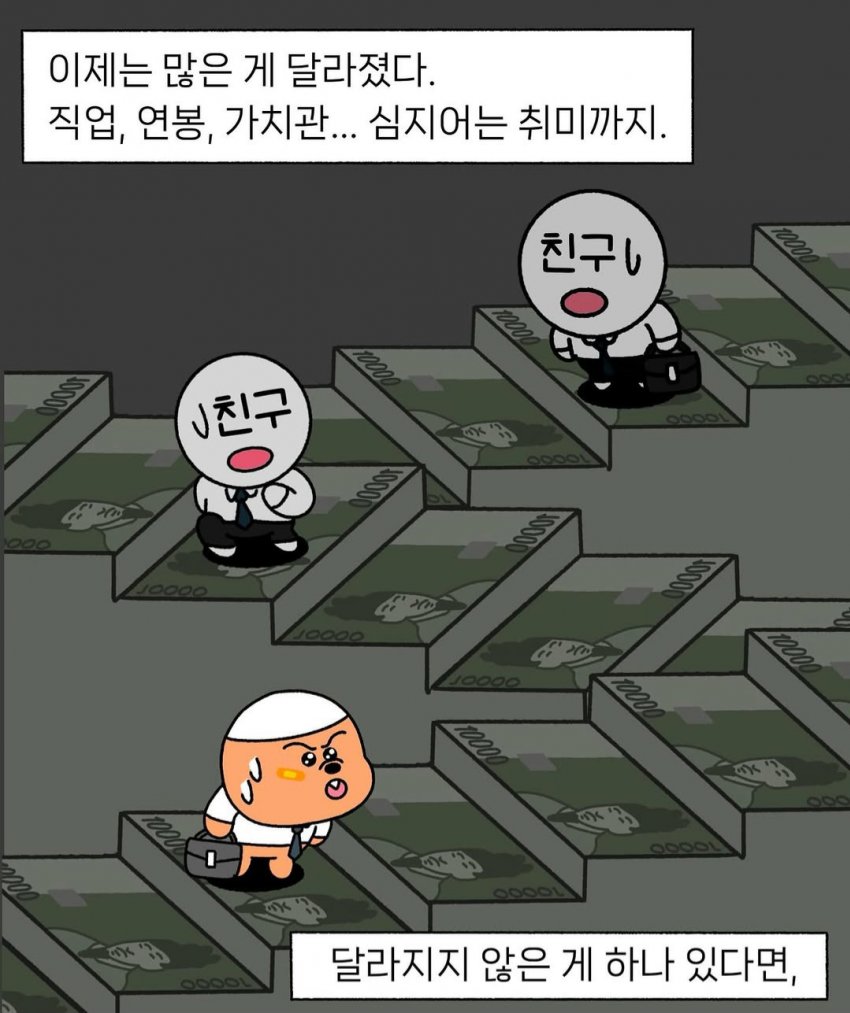 개소리지. 친구들간이 연봉 최소 -2000~8000만원 차이나고 서넛 결혼했는데도 초중딩 때처럼 논다. 걍 우연히 같은 반이라서 가까워진 찰나같은 인연 말고 따로 생긴게 없으니까 저딴 소리나 하지