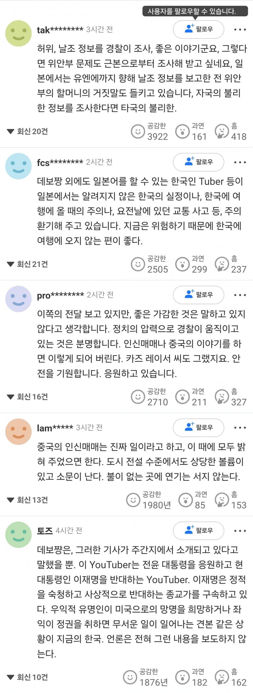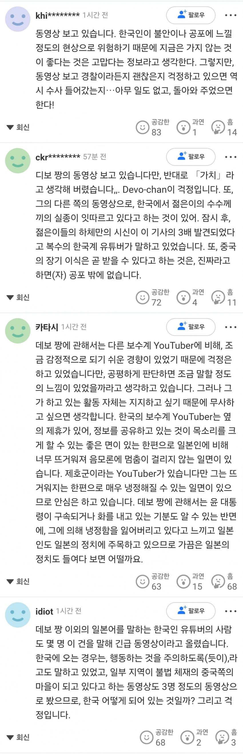눈치 챙길 줄 모르는 찐따 혐한 구독자들 덕분에 실시간으로 쌓여가는 불리한 증거를 보고 있는 당사자의 심정은 어떨까?