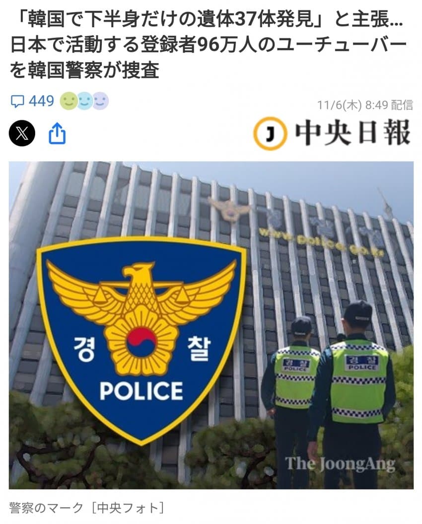 가짜 뉴스를 퍼뜨린 혐의로 수사가 시작된 96만 유튜버 대보짱에 관한 소식이 일본 내에서도 퍼지기 시작함