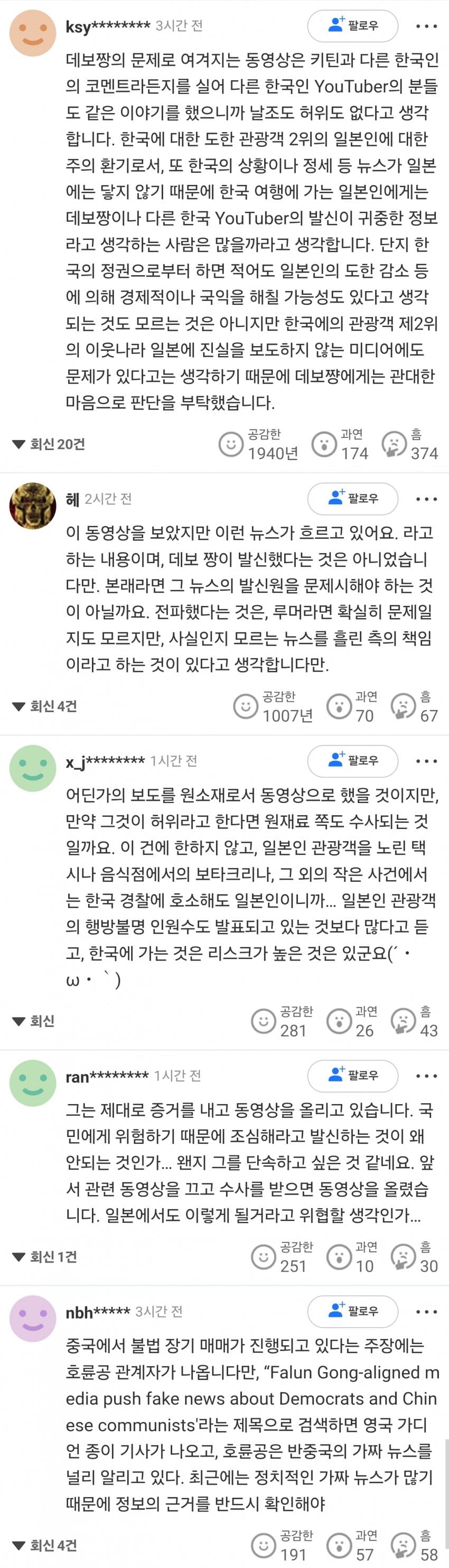 혐한 비난 댓글 투성이에 한국이 위험하다는 건 거의 기정사실화된 분위기