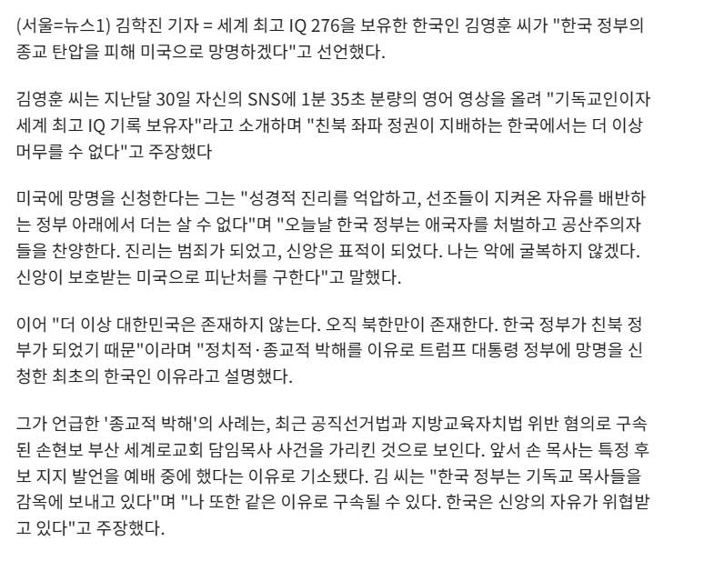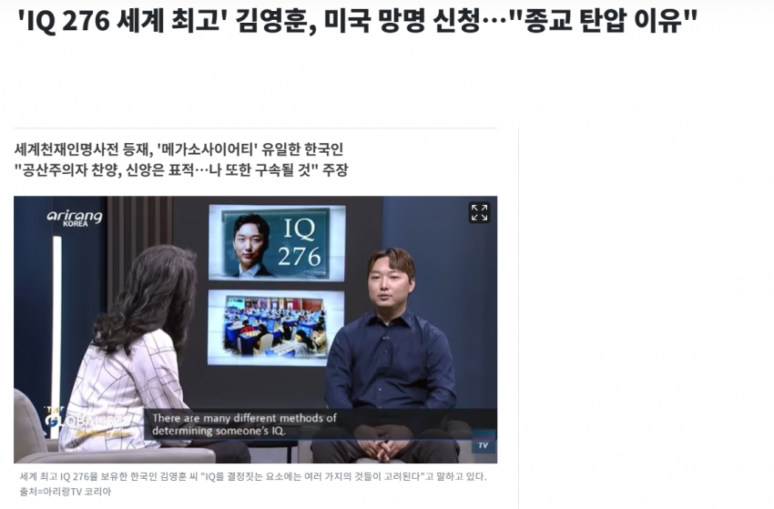 앵간치 ㅅㅌㅊ 반도체 인재만 되도 미국에서 영주권 지원해주면서 먼저 와달라고 하는데 아무데도 불러주는데도 없고 스펙도 없으니 망명신청서 낸거 짠내나누 ㅋㅋㅋㅋㅋㅋㅋ 아이큐 276이라는데 이룬 업적 없음??