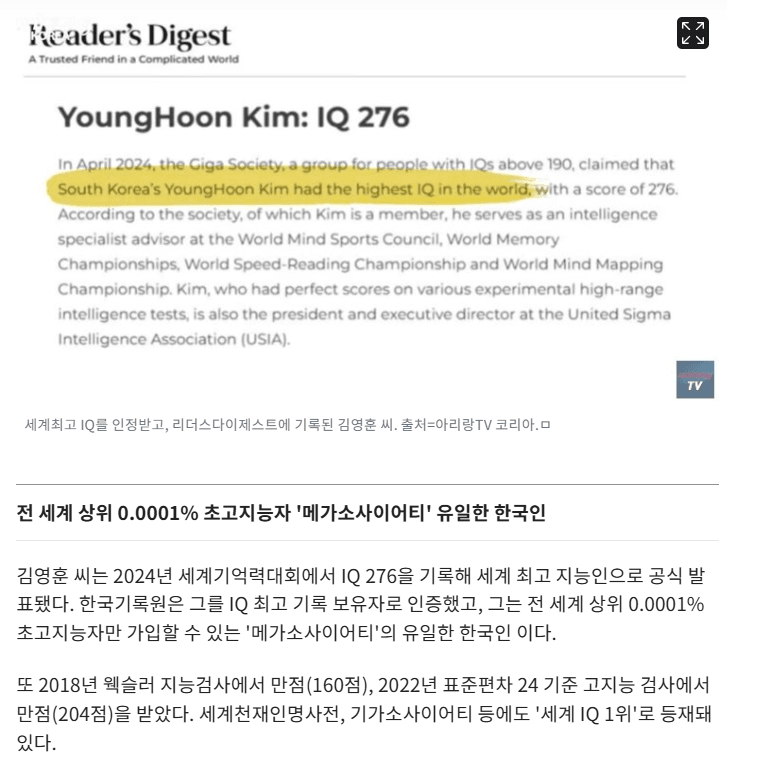 아이큐가 276인데 왜 안 받아줌? 전 세계에서도 아니고 이때까지 있었던 모든 사람보다 똑똑한 수준인데ㅋㅋ