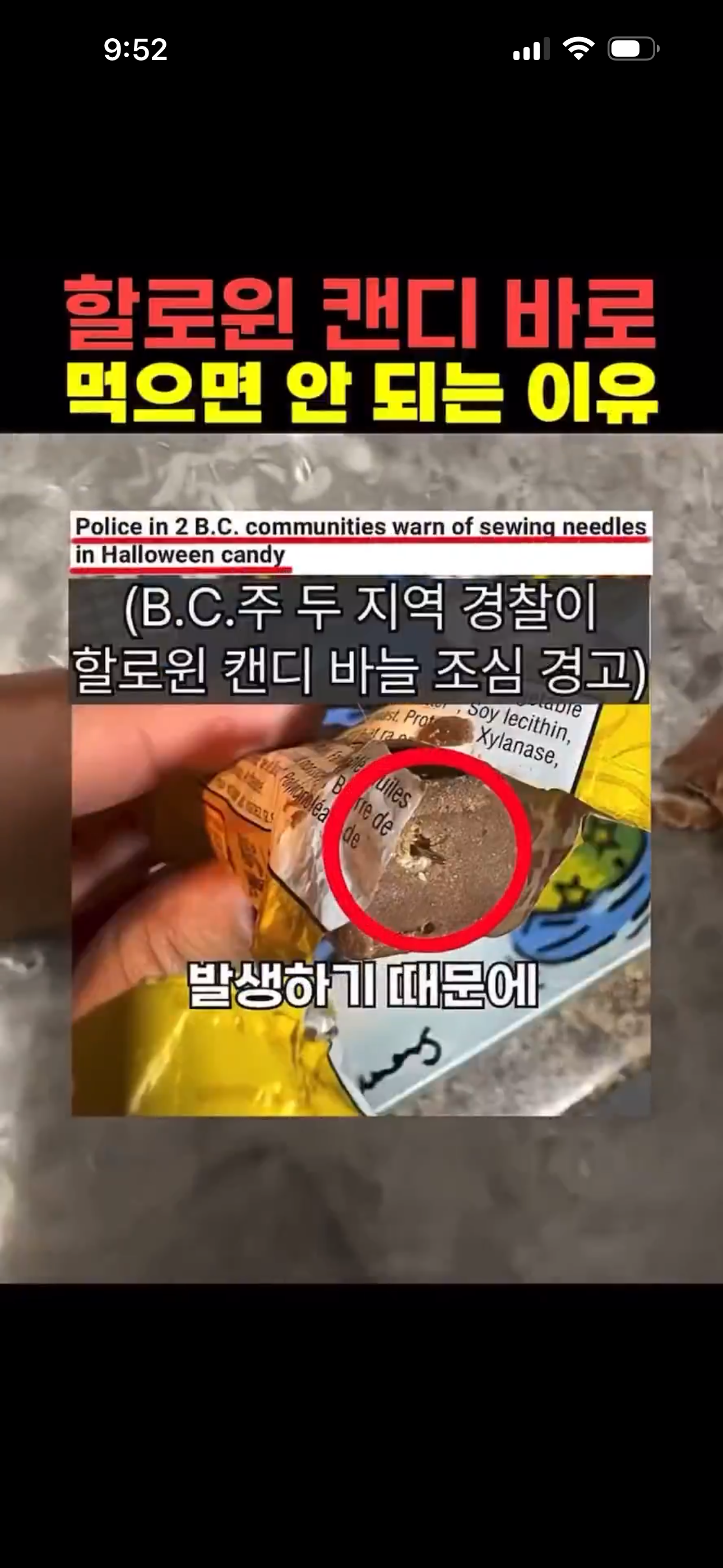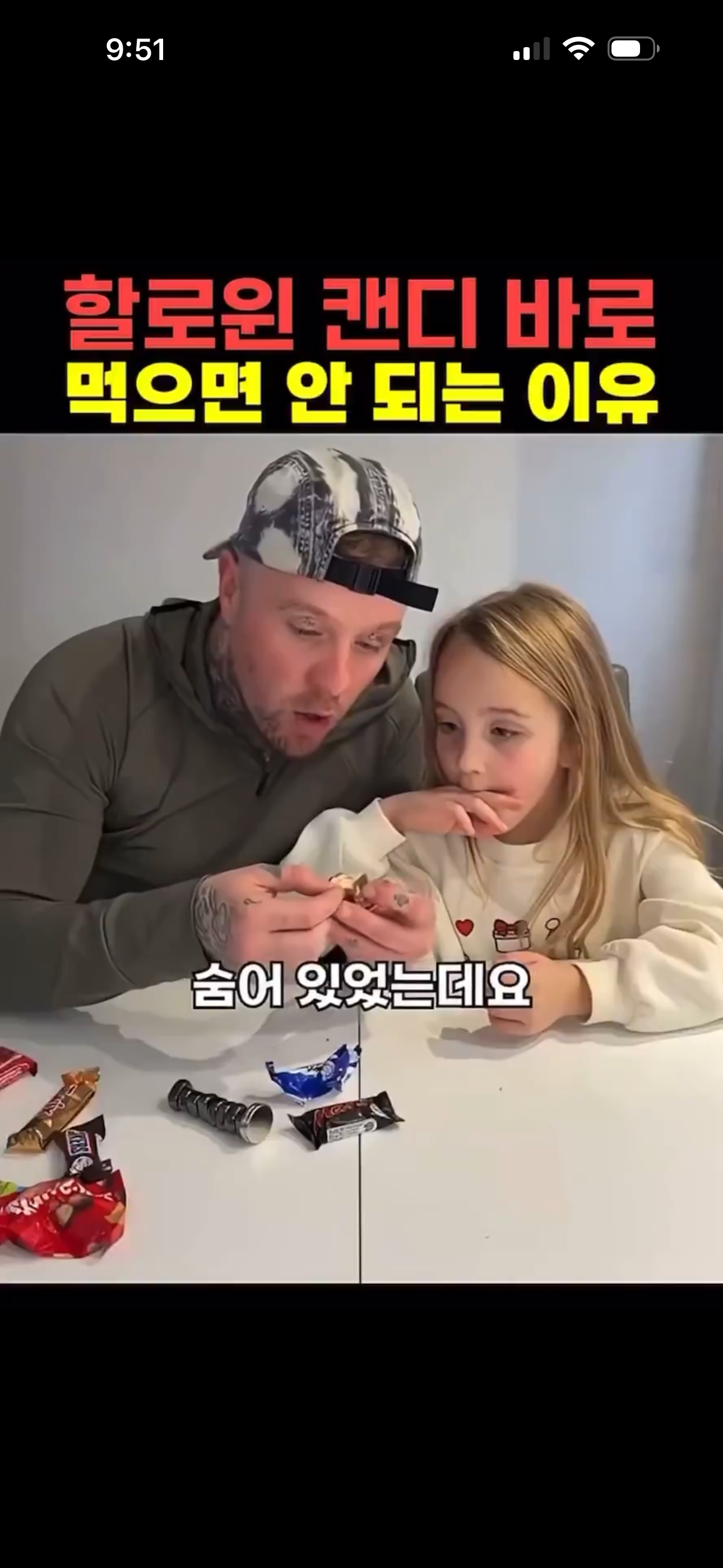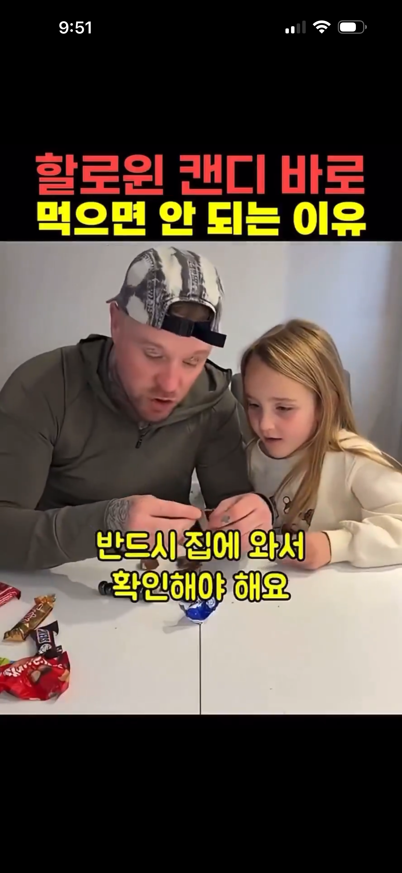 애들이 받아온 초콜릿에서 맛있는것만 부모들이 뺏어먹으려고 애들 상대로 장난삼아 찍은 prank 영상이 한국 와서 자막 입혀지니까 할로윈 바늘 테러 영상이 되버리네 ㅋㅋㅋ