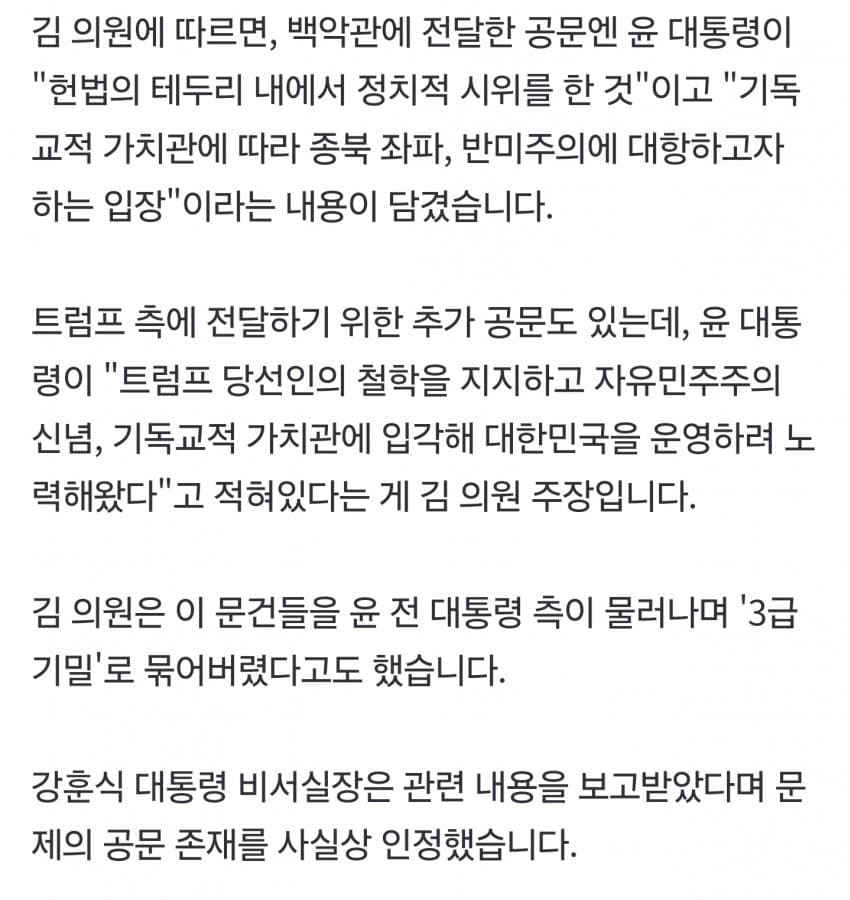 윤석열이 공문을 보냈다(X) 윤석열이 공문을 보냈냐고 민주당 의원이 질문하고 (이재명의) 대통령 비서실장이 그렇다고 대답했다(O)