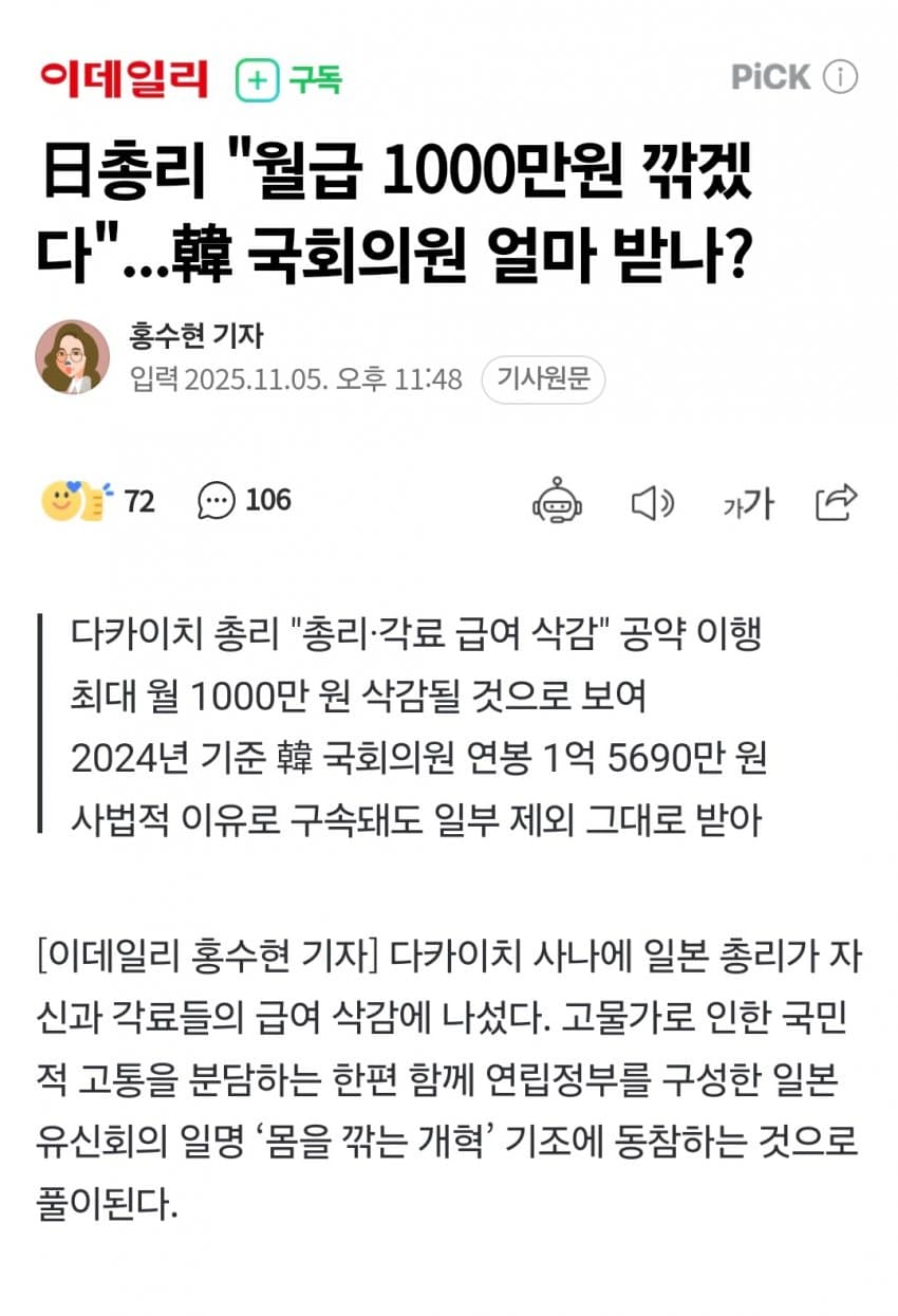 일본 국회의원 평균 연봉 한국 세배임좀 줄여도됨