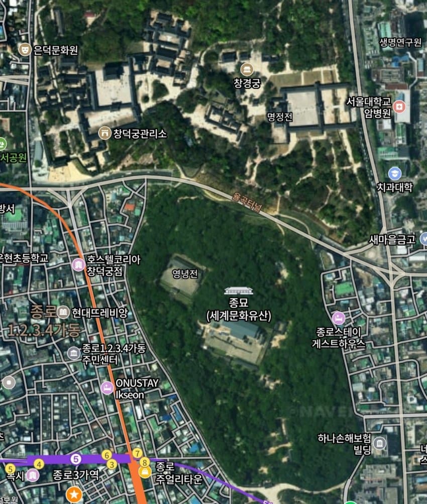 종묘 정전 뒤에는 창경궁이 있다.