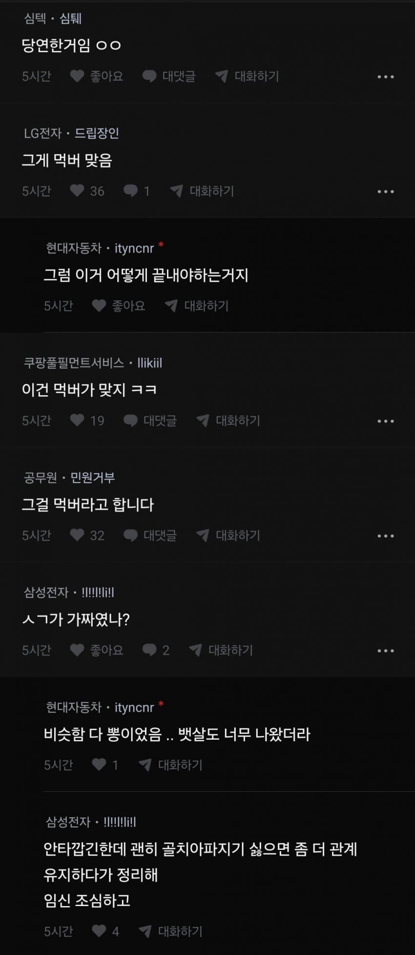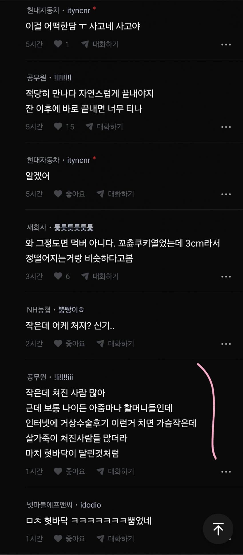 마지막으로 나거한 잘아는 댓글들