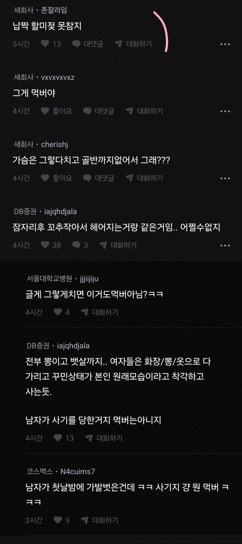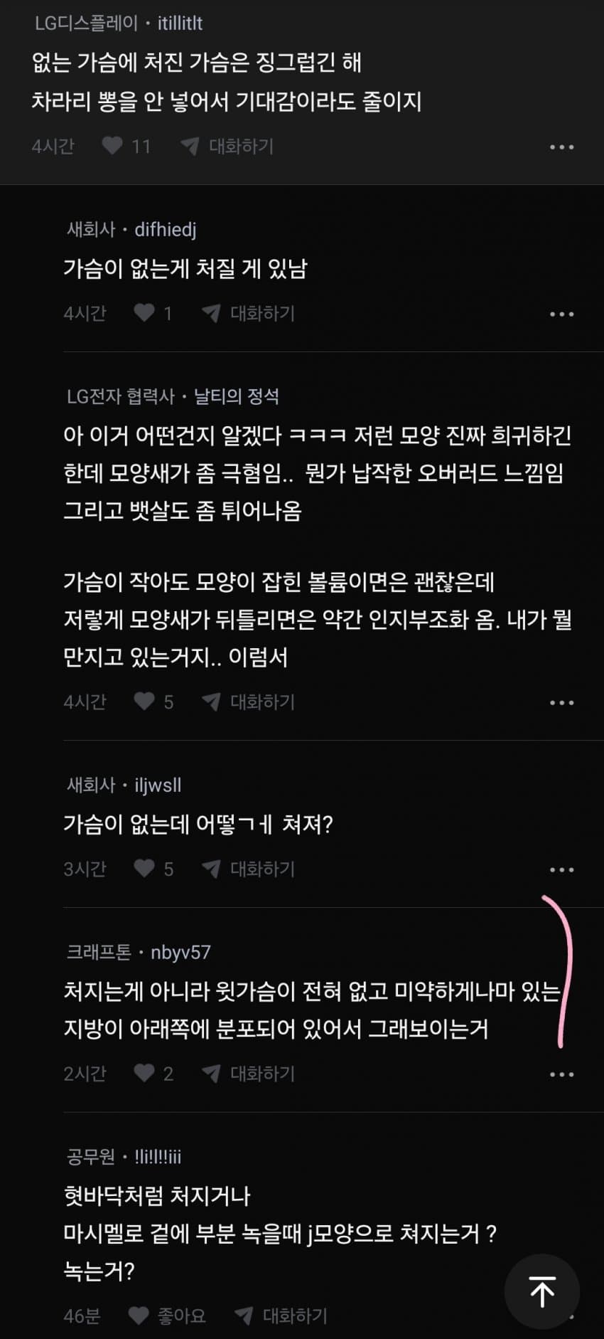 발작하는 새회사 너도 작고 처진가슴에 뽕넣고다니냐?ㅋㅋㅋ