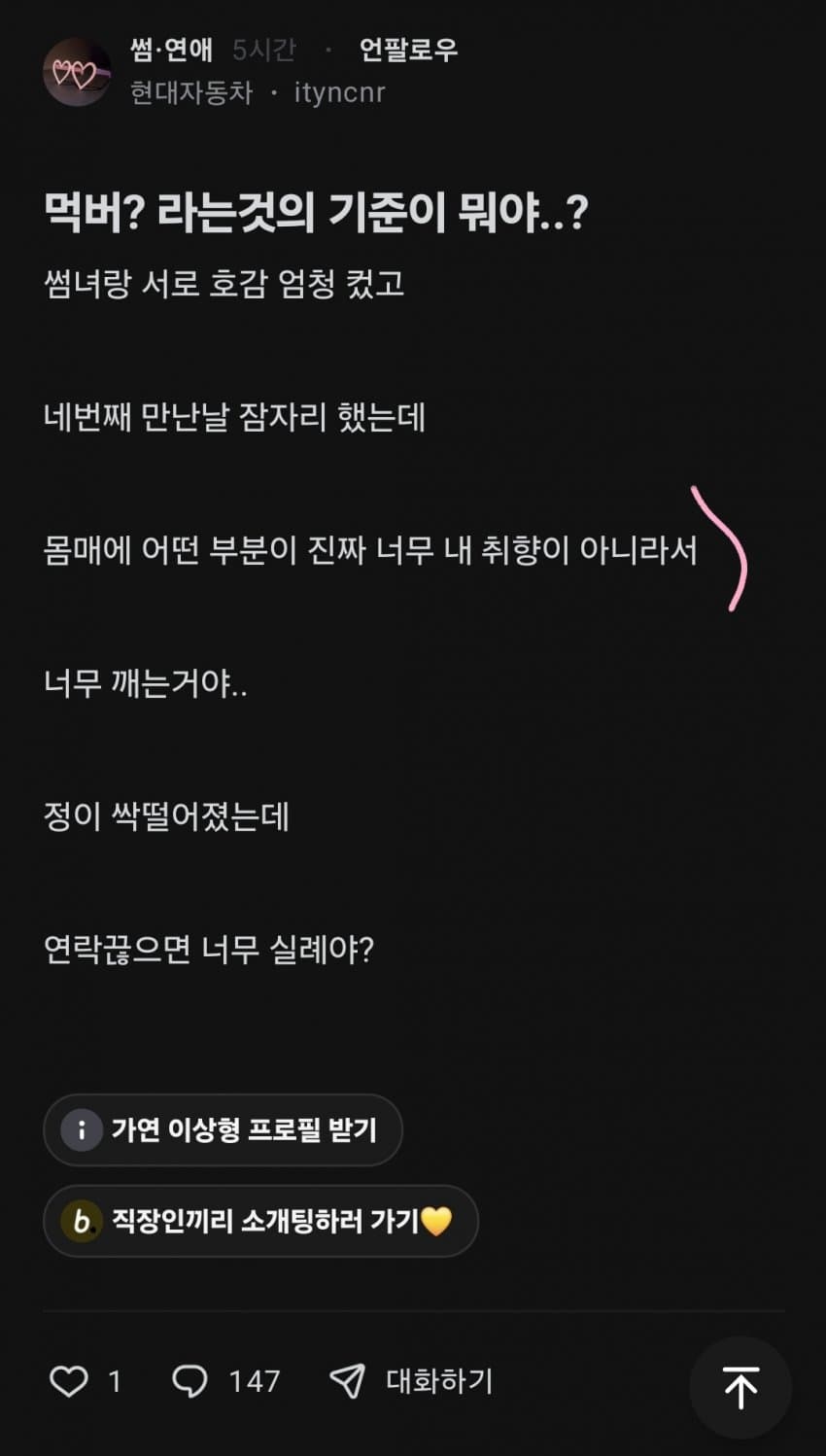 몸매에 어떤부분?이 취향이 아니었다는 쓰니