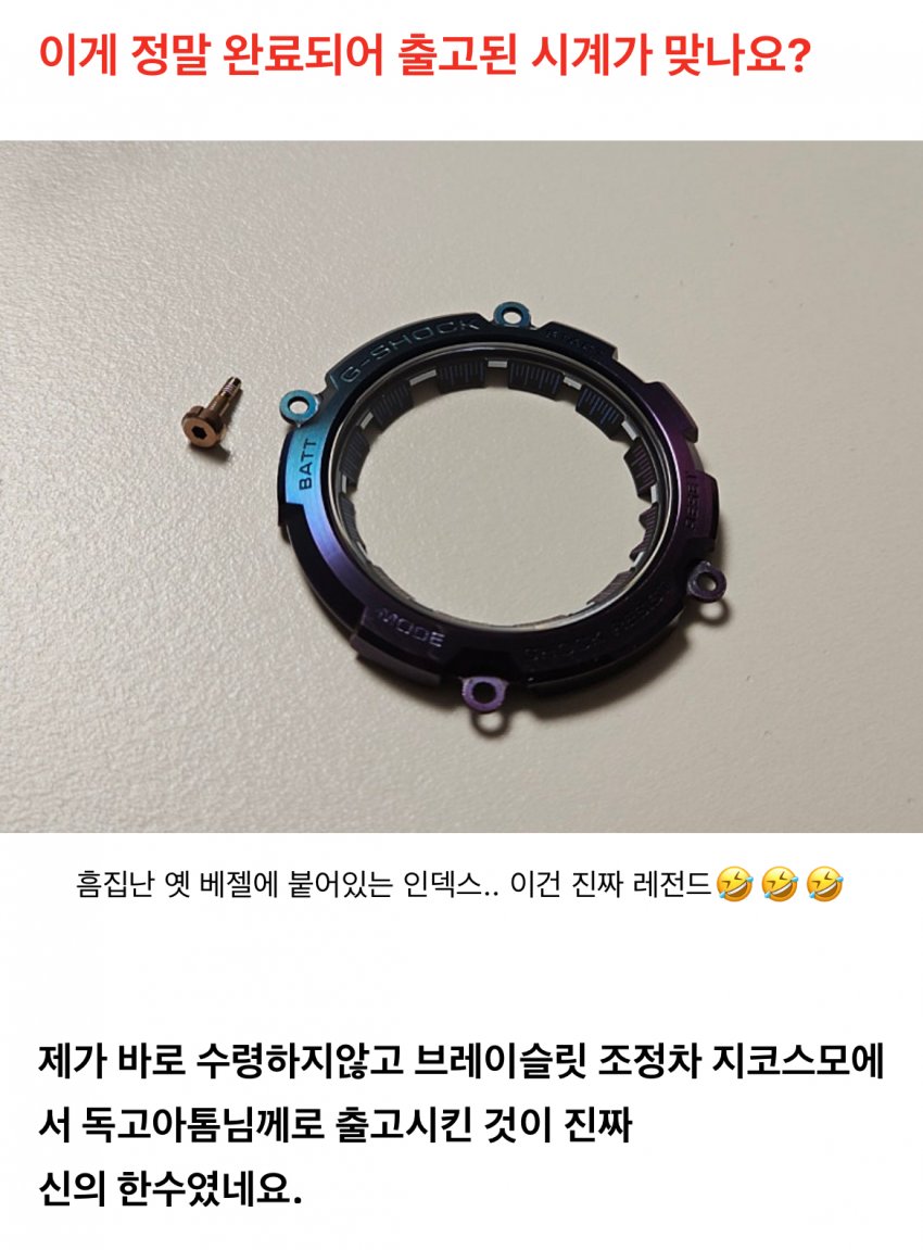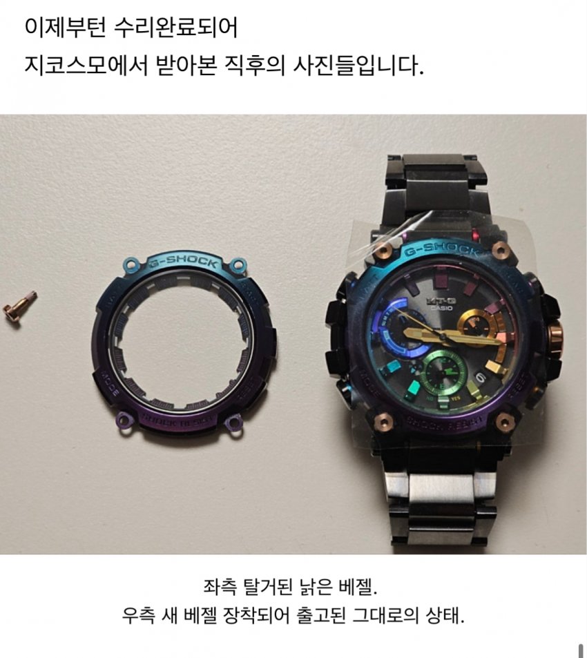 공식에 보내서 수리하고 개인 업자한테 브레이슬릿 조정해달라고 했다가 본인이 미처 보지 못한 베젤 누락을 알게 된 거