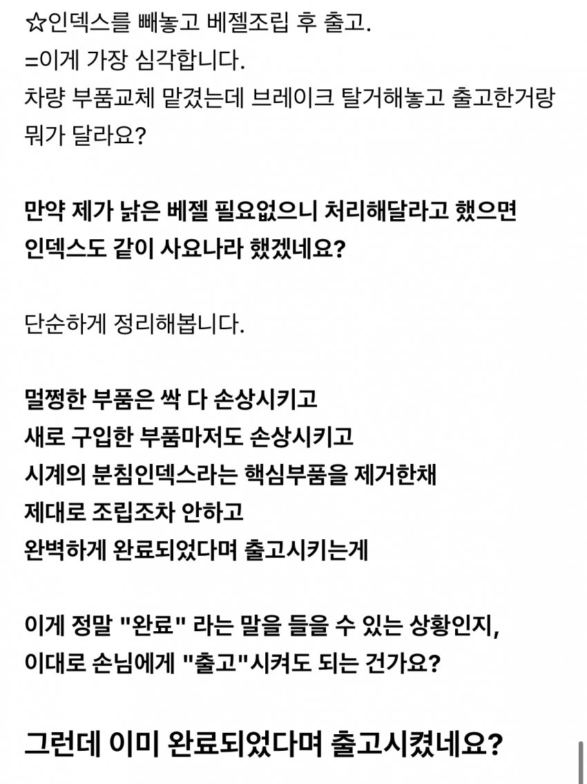 안나라고 공식에 맡기는건데 기스나고 나사 뭉개지면 누가 공식에 맡기노ㅋㅋ그냥 본인이 자가수리해도 같은 결과인데