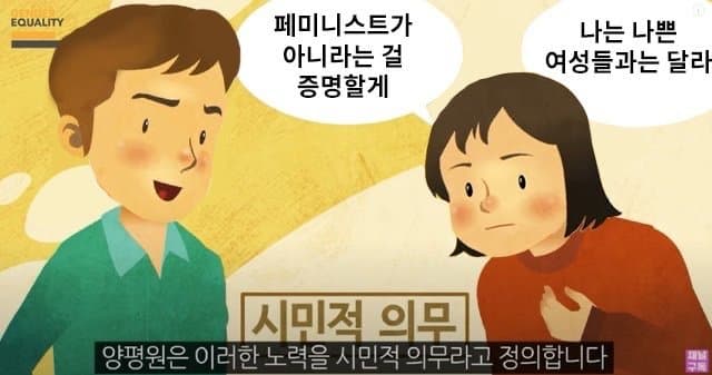 여풍당당 대등한 관계 어쩌고 입 털거면기본이 반반이고 서로 자립 가능한 둘이 협력해서 사는 모습을 지향해야지현실은 가부장제에서 빨던 꿀은 한방울도 놓치기 싫은 정말 추악함 그 자체