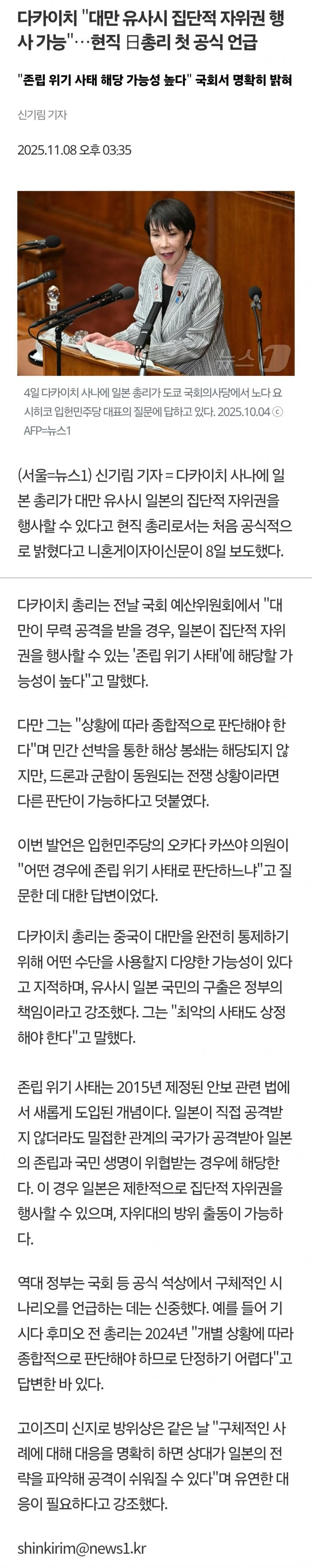 난 한국인인데 역시 쟤는 극우가 맞구나...만약 양안전쟁이 일어난다면 대만 독립론 전쟁광들이 유도해서 어쩔수없이 일어나는 일인거지 그걸가지고 자위권을 발동시킨다고???일본은 역시 한국과 함께갈수없는 나라구나..