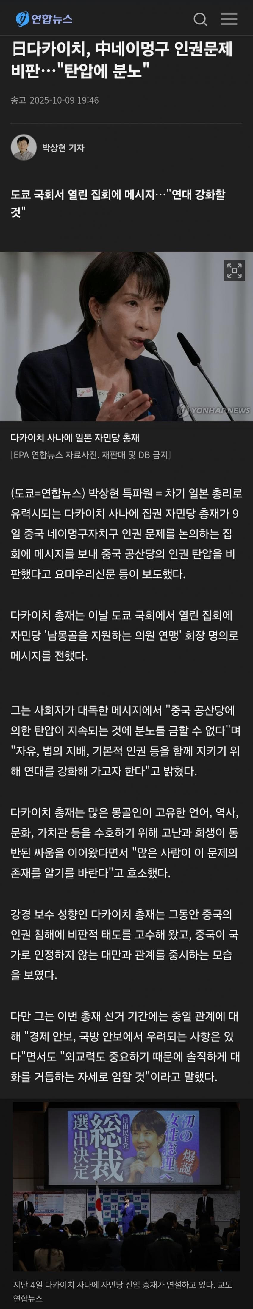 한국에 기생하는 자칭 진보들이 다카이치 입에 거품물고 까댄 이유가 저거임 ㅋㅋㅋ 반중 노선 타는게 확실해보이니까