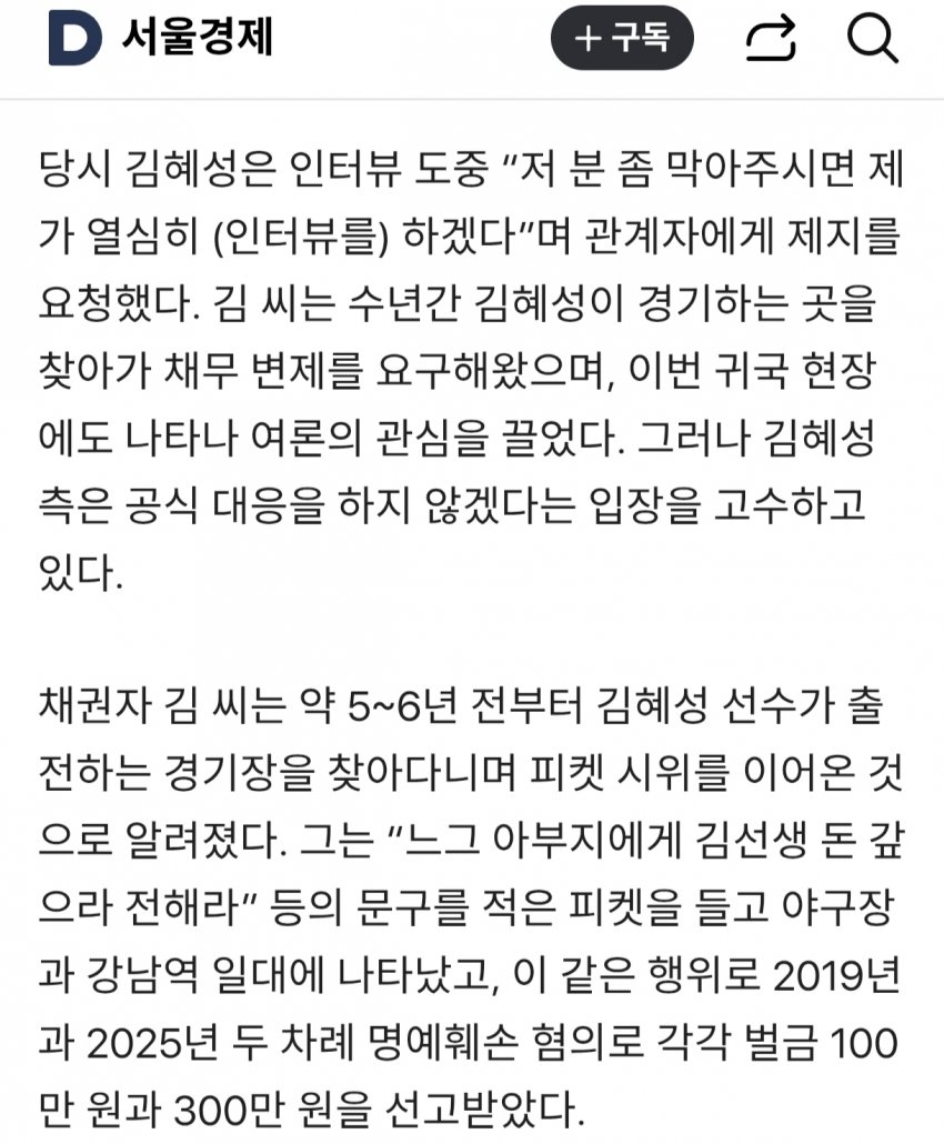 김혜성 입장도 이해는 감 신인 때부터 출몰해서 저지랄 했는데 주기 싫을듯 자기 개인 빚도 아닌데