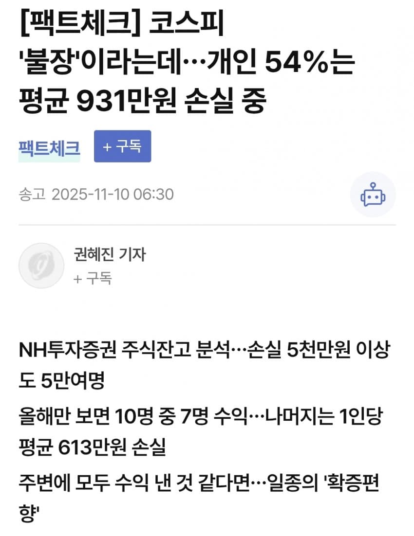 이대남 곱버스 탄다고 조롱하던 영포티 카카오 물려서 코스피 4200에도 손실 중