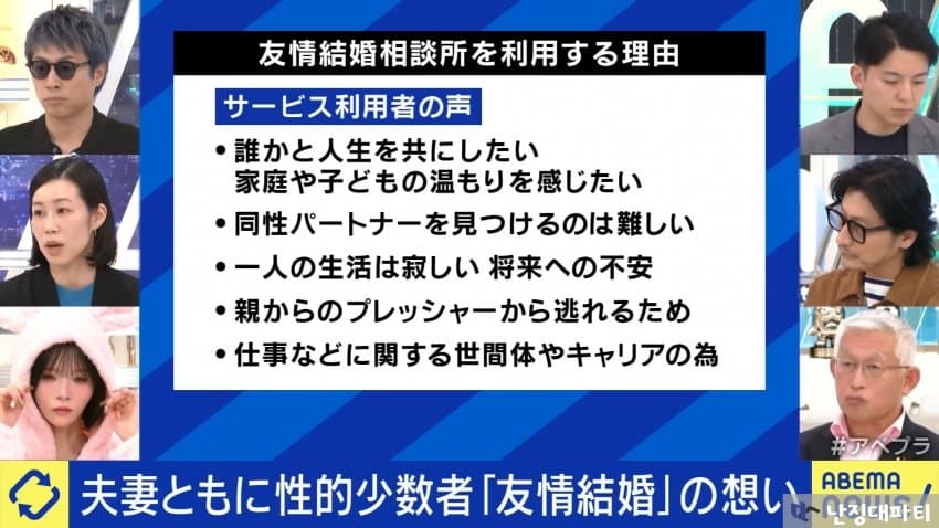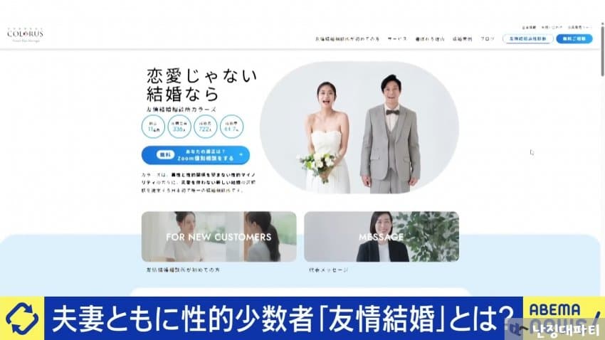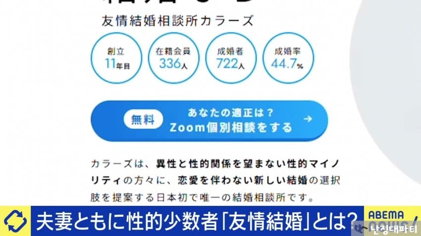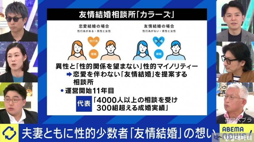 저런 부부를 맺어주는 우정결혼상담소 컬러즈의 대표 나카무라를 데려다 놓고 방송을 찍었음
