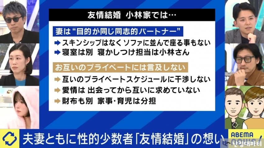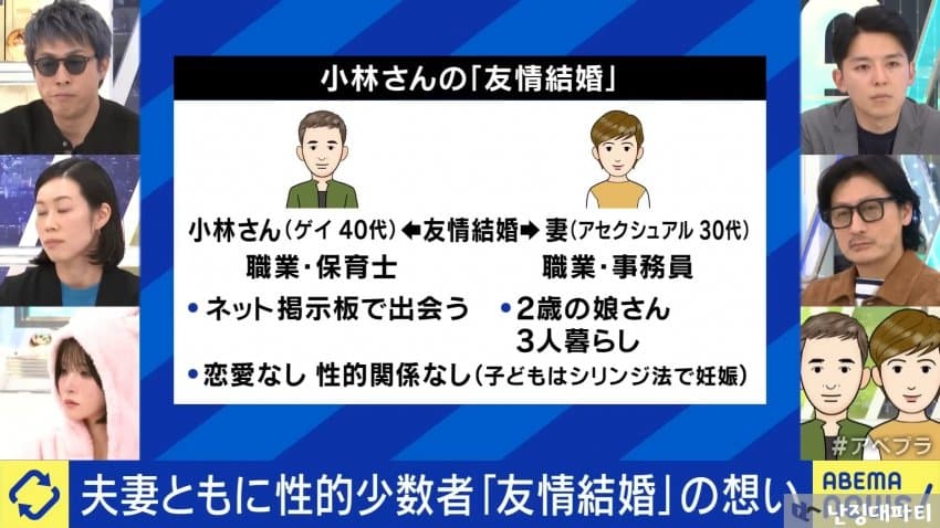 앞서 말했지만 이 고바야시 부부는 동성애자 남편(40대, 보육사)과 30대 무성애자 아내(30대, 사무원)이