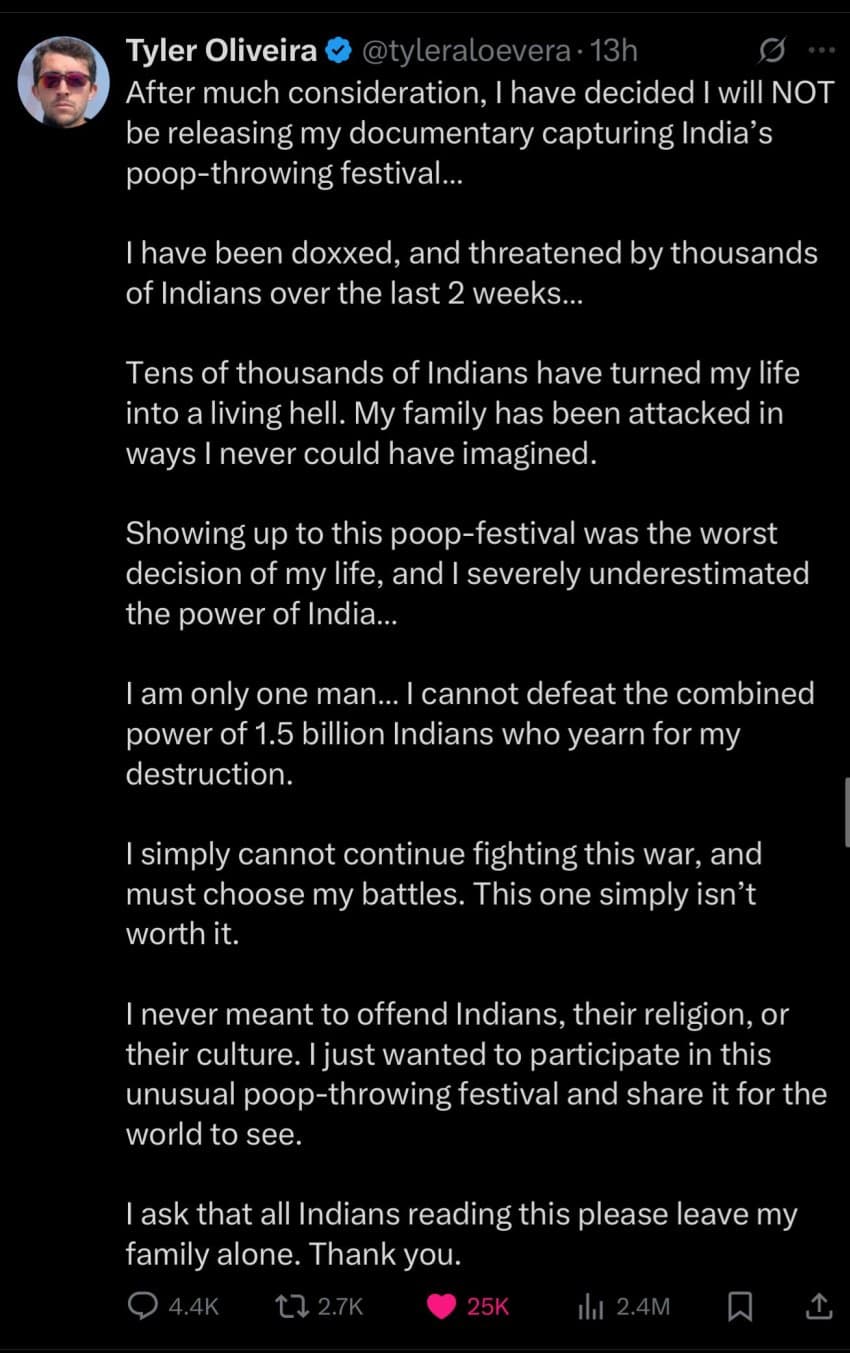 결국 이로인해 서양 트윗,커뮤 등에서는 인도 똥축제 얘기로 엄청난 화제몰이를 하는중이다