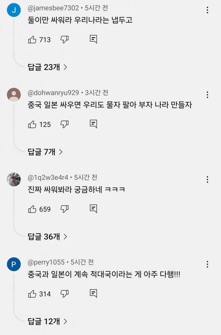 짱깨, 섬짱깨, 쪽본을 모두 혐오하는 참으로 정상적인 댓글들을 보니 마음이 든든하네