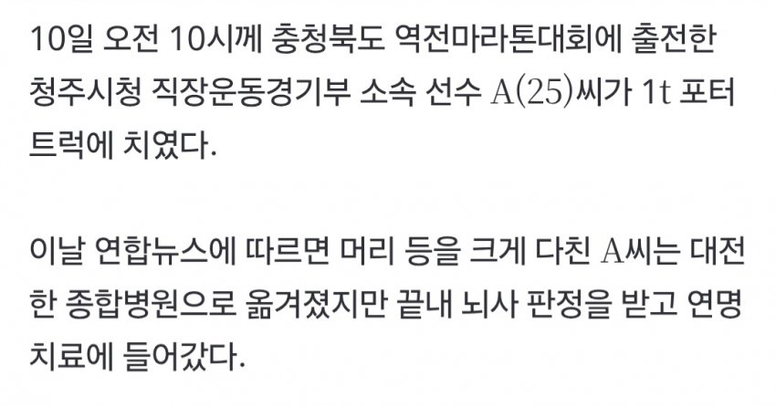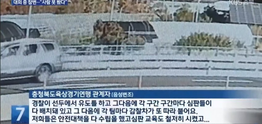 앞에서 뛰고 있는 선수를 운전자가 뒤에서 덮침. 앞을 못봤다는게 말이 되나?