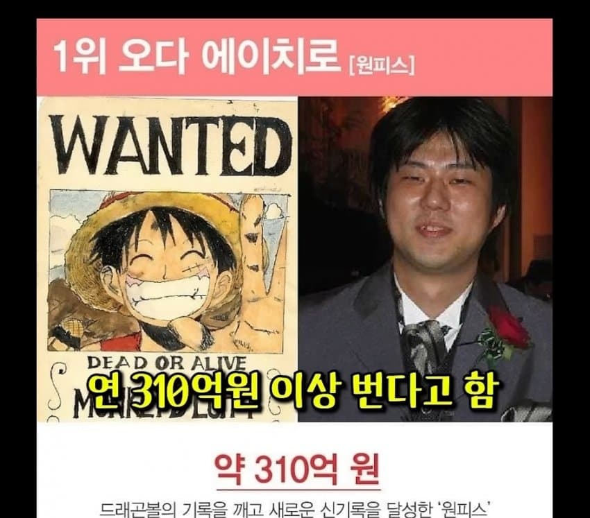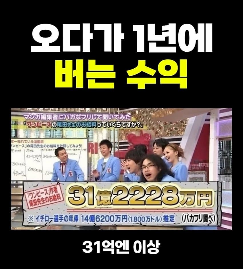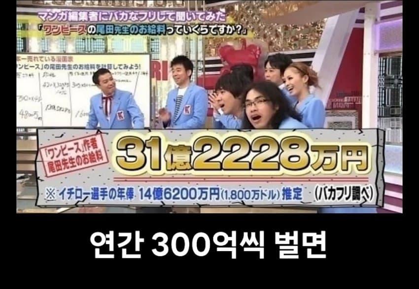 난 오다급 만화가가 300억밖에 못 번다는 게 더 이상한 거 같은디...집계된 것만 31억엔이나 한거겠지?