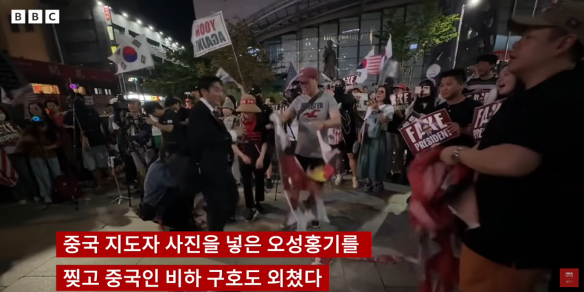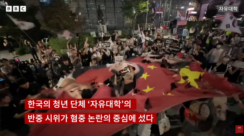 미국 국기찢고 트럼프 얼굴찢는건 무죄중국 국기찢고 핑핑이 얼굴찢는건 유죄