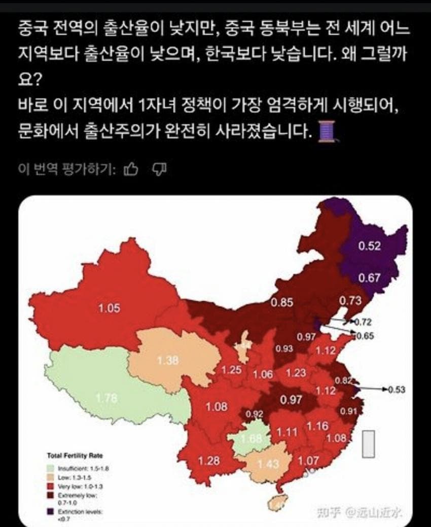 인구 다수가 몰려있는 해안가 중국도시 출산율은 이미 0명대로 추락