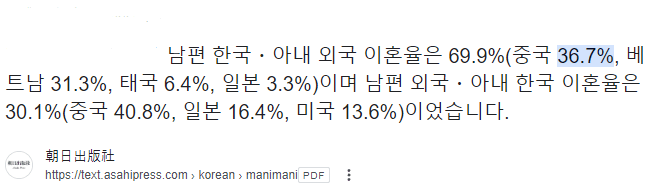 참고로 국제결혼 이혼율에서도 중국이 1위