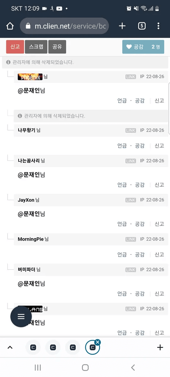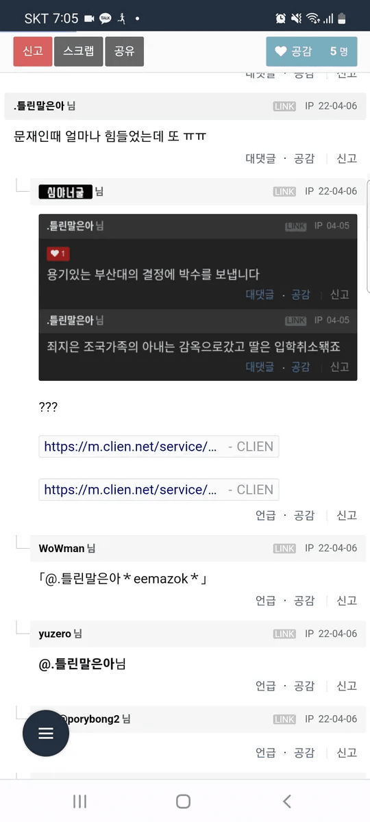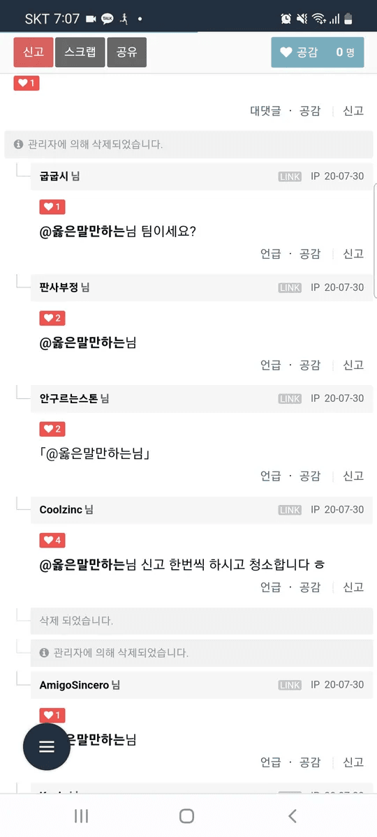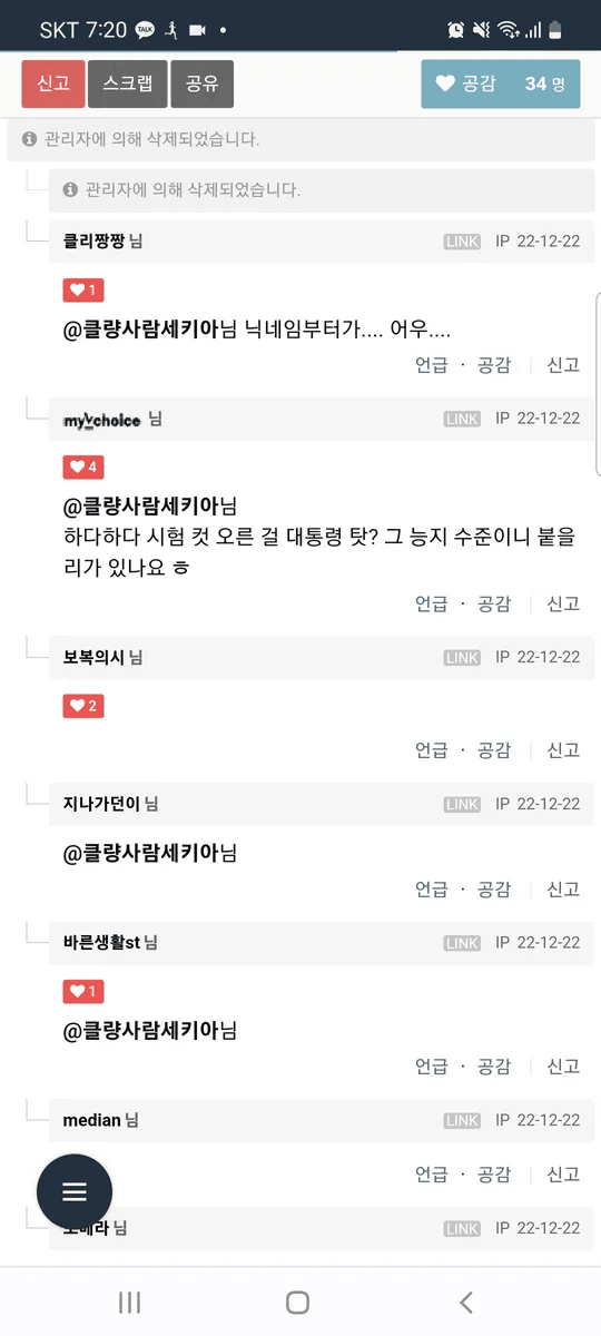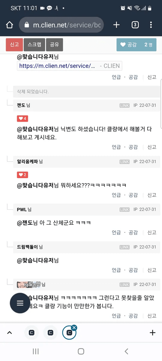하던대로 빈댓글 달지 신고해서 계정 정지는 뭐노ㅋㅋ