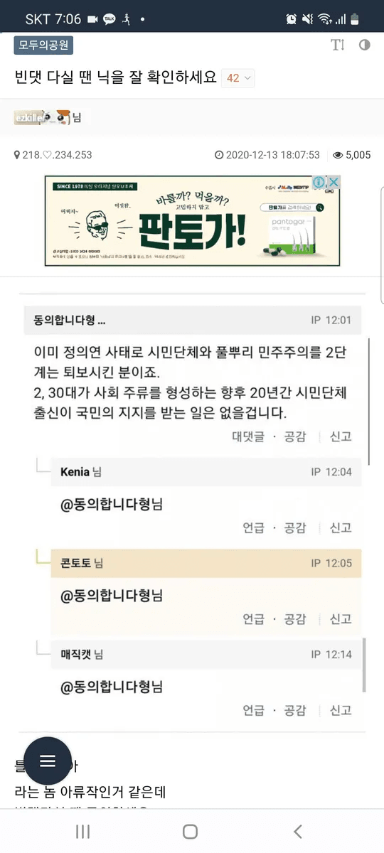 영포티 민속놀이 빈댓글을 음해하다니 네이놈들 지엄한 민주파출소의 심판이 두렵지 않으냐!