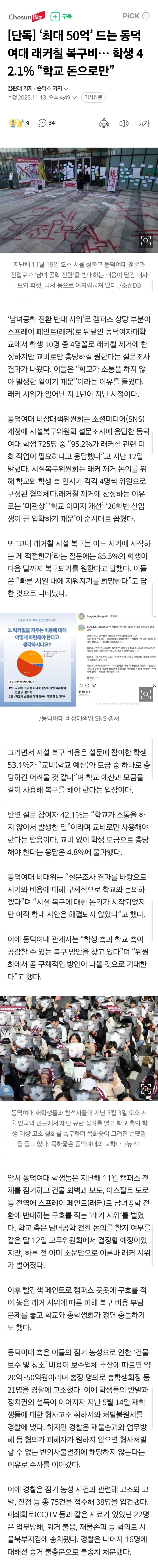 진짜 앞으로는 인생 살면서 동덕여대 비롯한 여대출신들은 피해야겠음. 마인드들이 참...