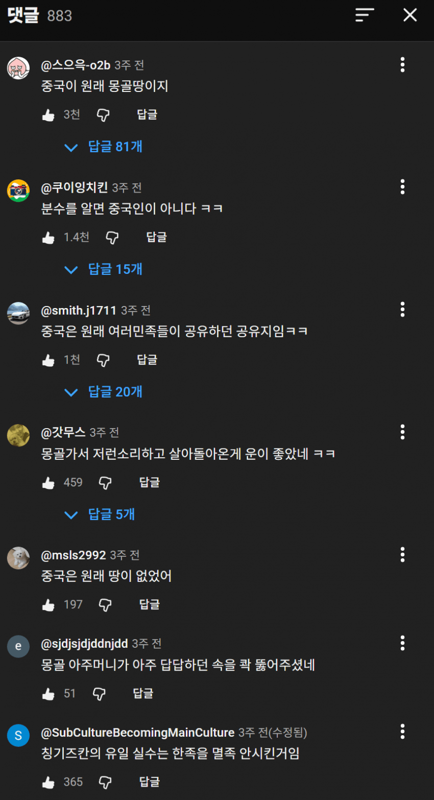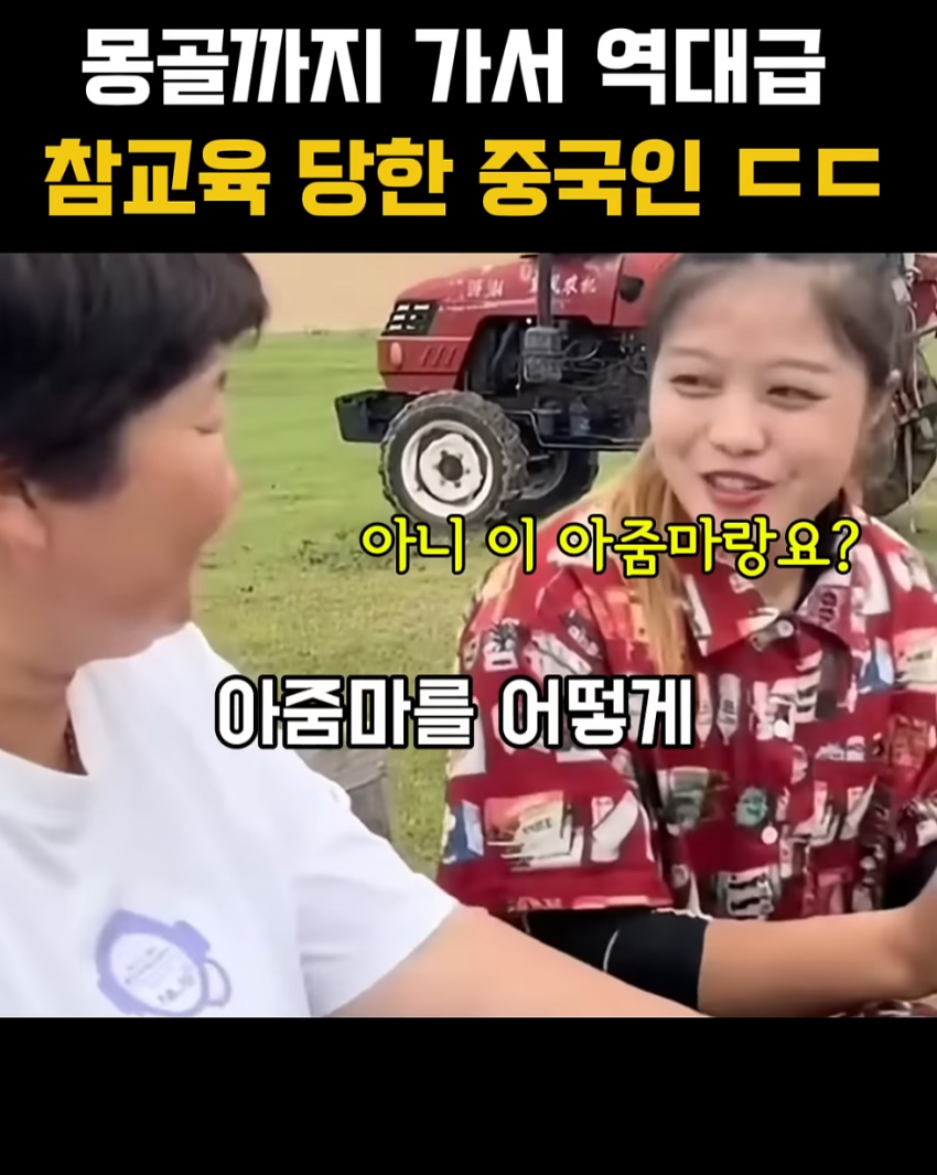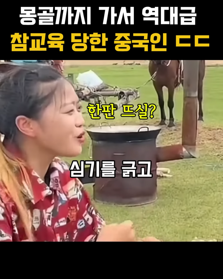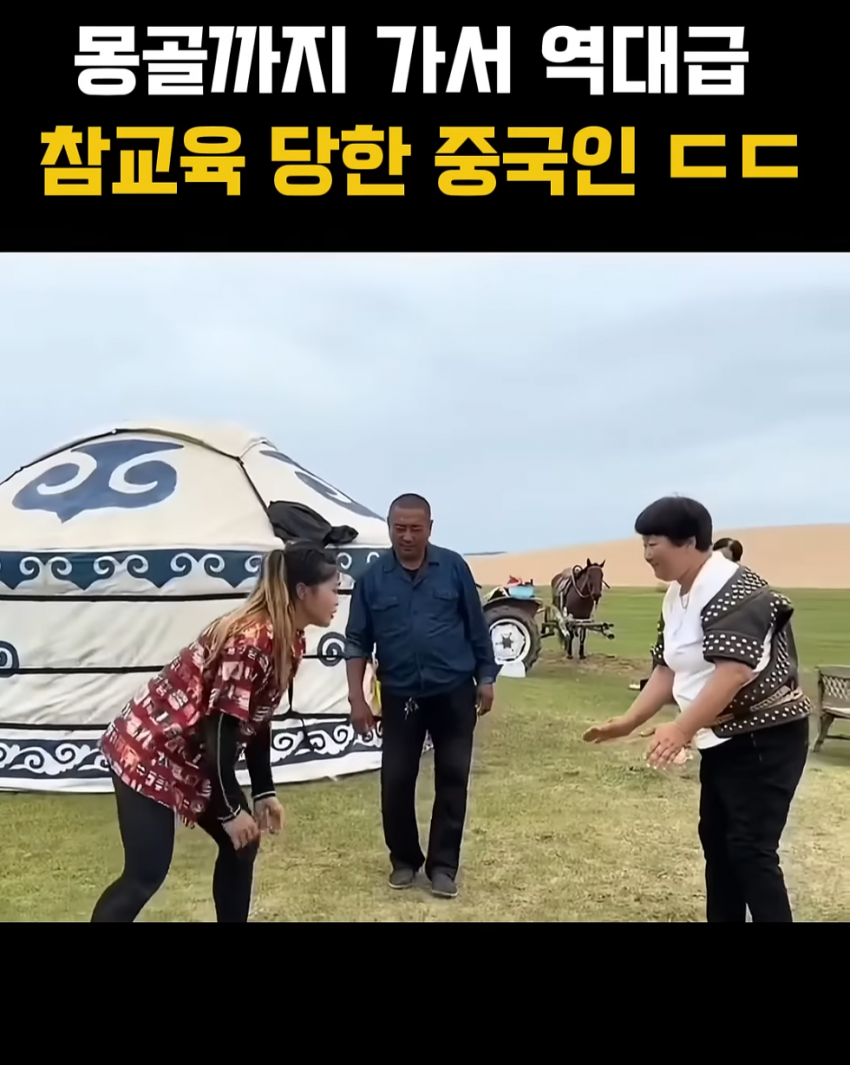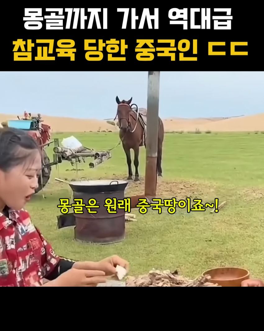 요즘 짱개들은 몽골부터 대한민국까지 찾아가며 니들땅은 우리거야라며 짱개화시키려고 작정한거 같은 느낌. 당장 짱개 무비자 철회하고 참교육이 절실하다.