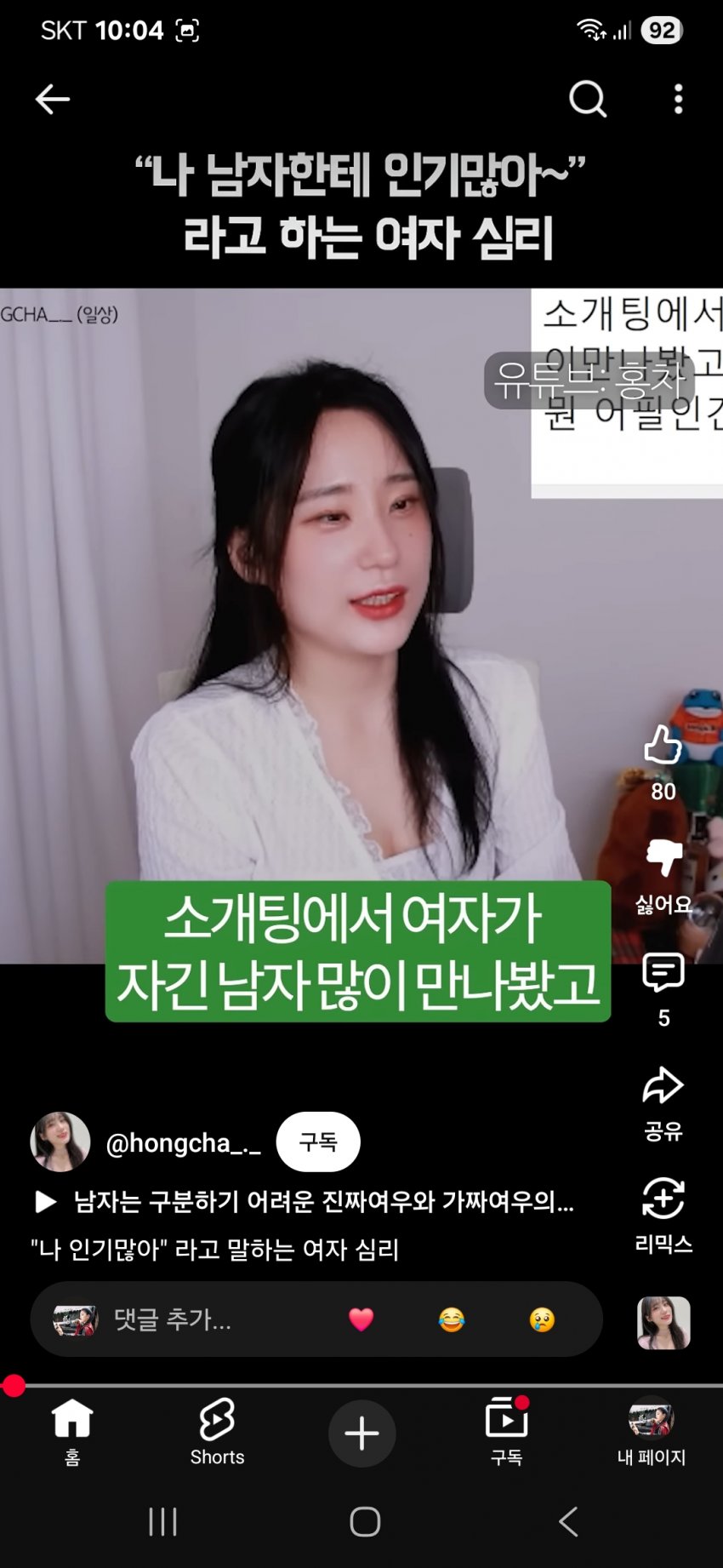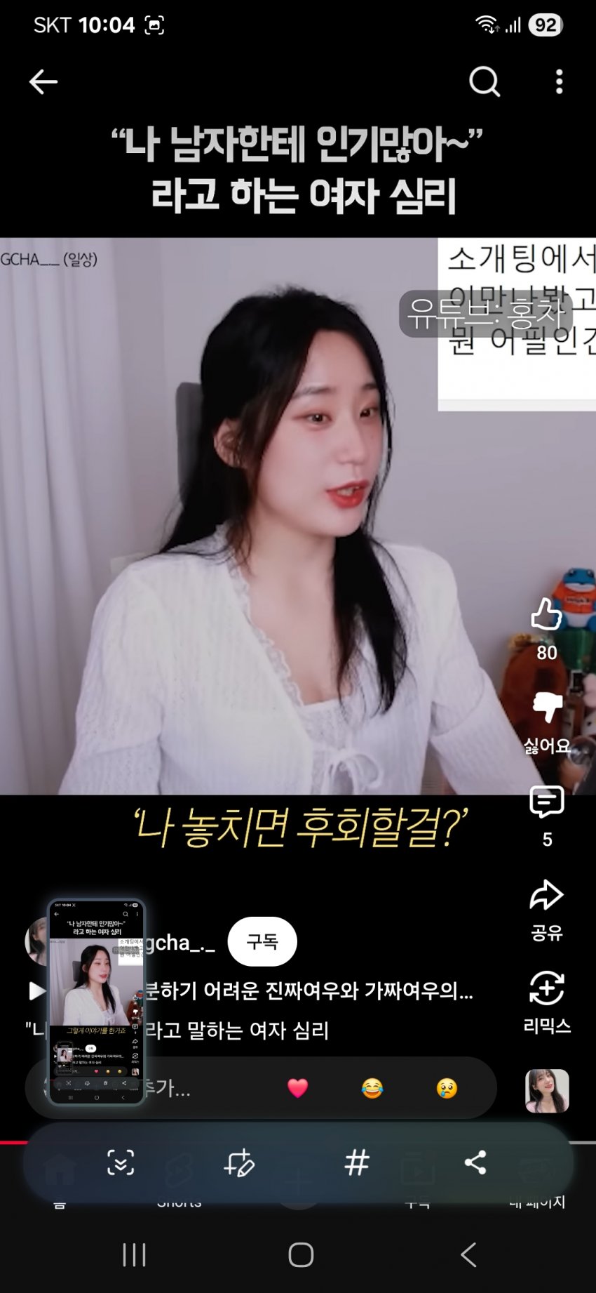 나 남자한테 인기많아! 라고 갑질하지말라는 유튜버. 시대에 뒤떨어진