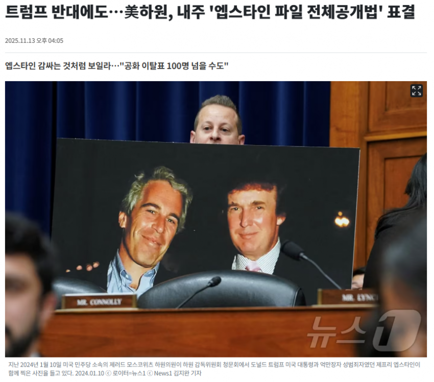 지금 공화당 내에서도 엡스타인 성범죄를 심각하게 보고 있는지라 통과될것으로 유력함