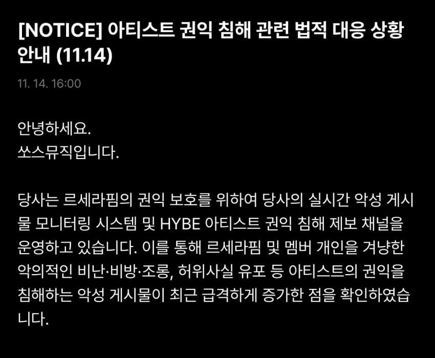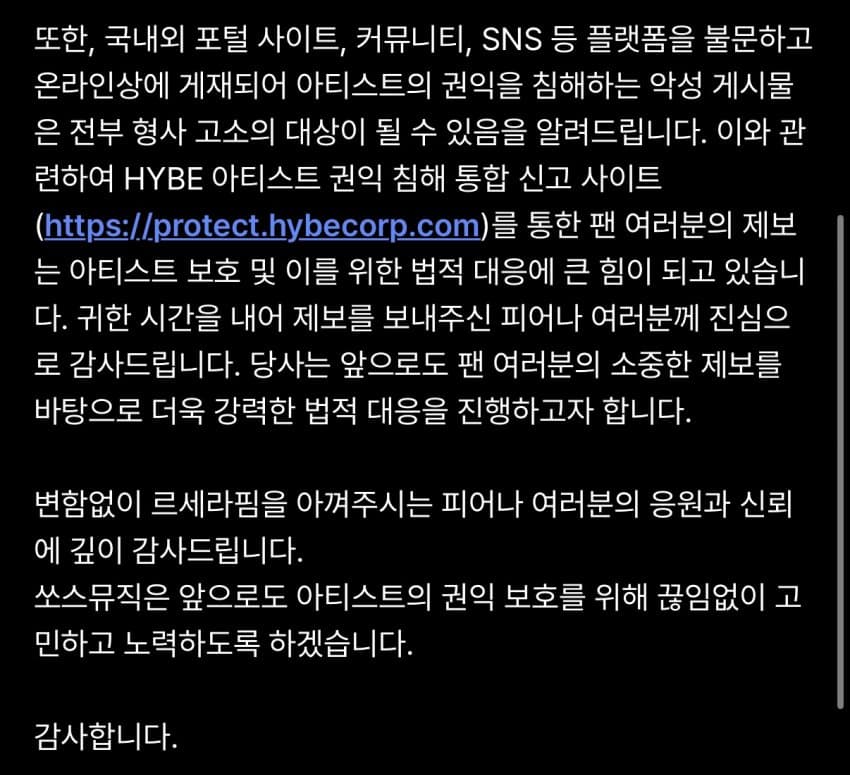 르세라핌 팬들부터 고소해라 얘네들이 하루종일 다른 걸그룹들까대서 르세라핌이 욕먹는건데