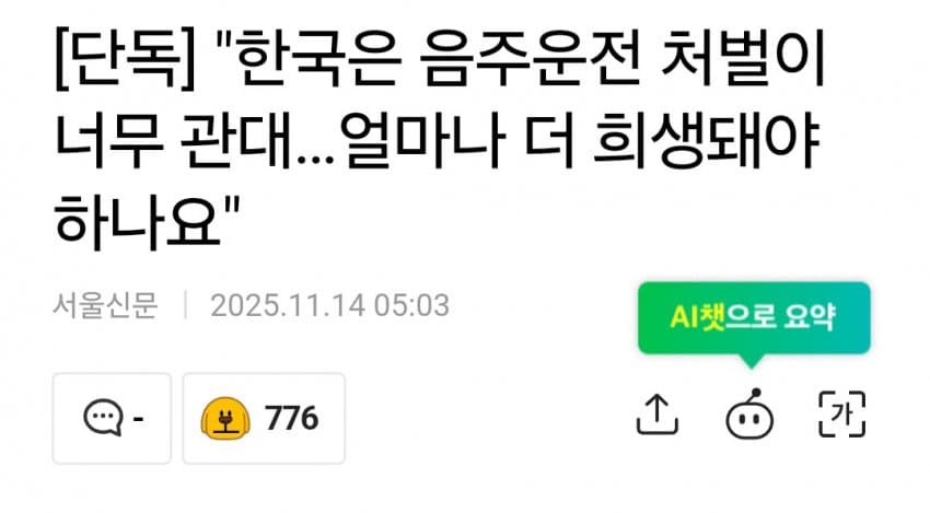 피해자는 누구나 될 수 있는데 음주운전을 객기 정도로 보는 국민들 수준이지 음주운전한 인간들이 사회적으로 매장되기는 커녕 대통령도 되고 장관도 되고 국회의원도 되고 연에인 스포츠스타도 복귀해서 잘 만 사는데 영이 서겠냐