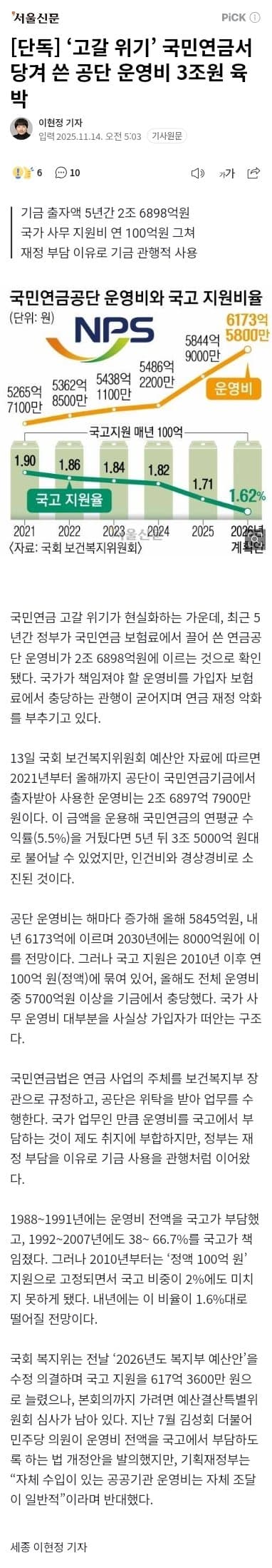[단독] ‘고갈 위기’ 국민연금서 당겨 쓴 공단 운영비 3조원 육박
