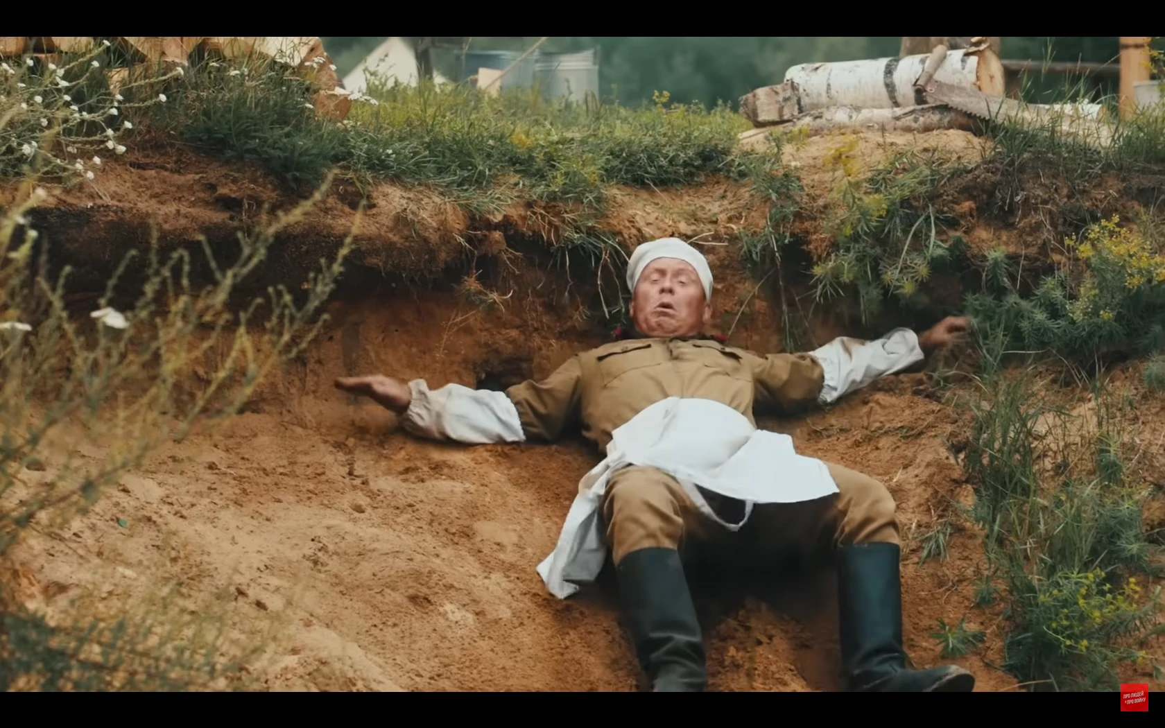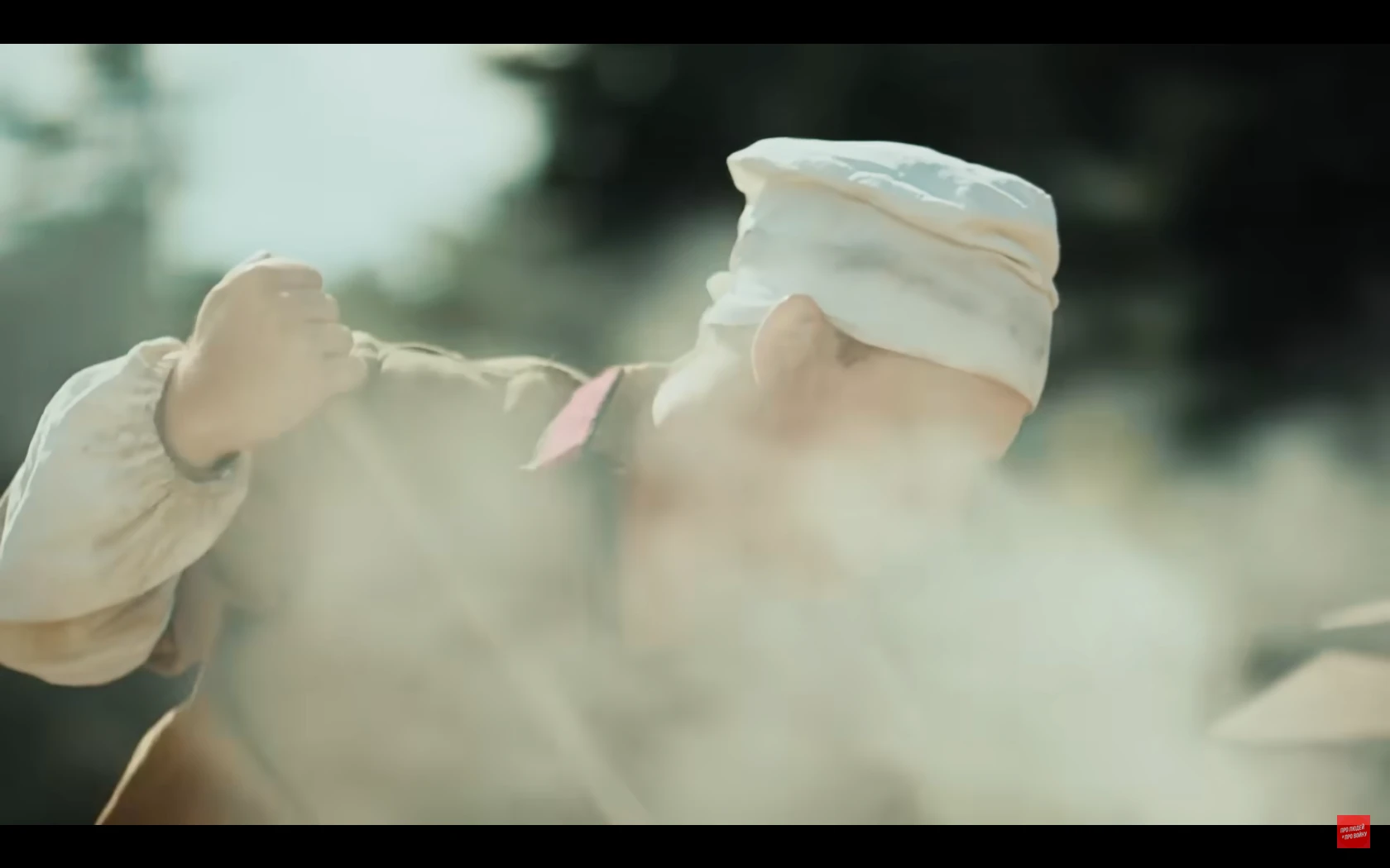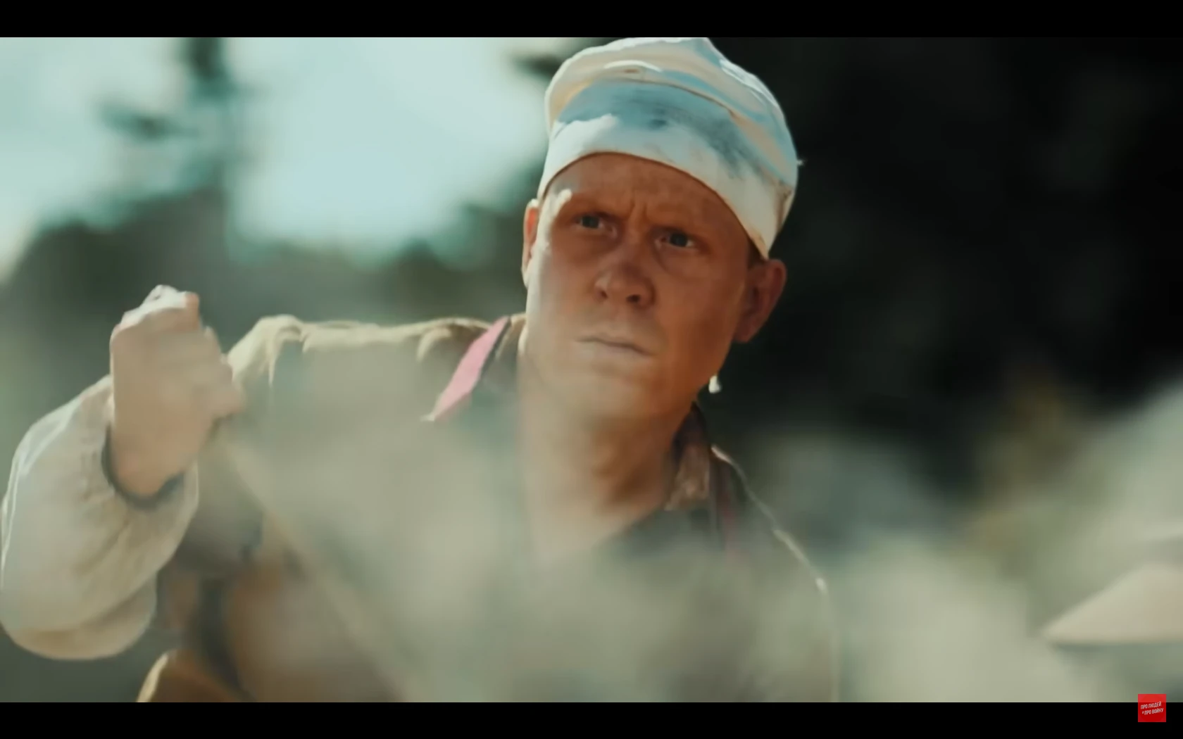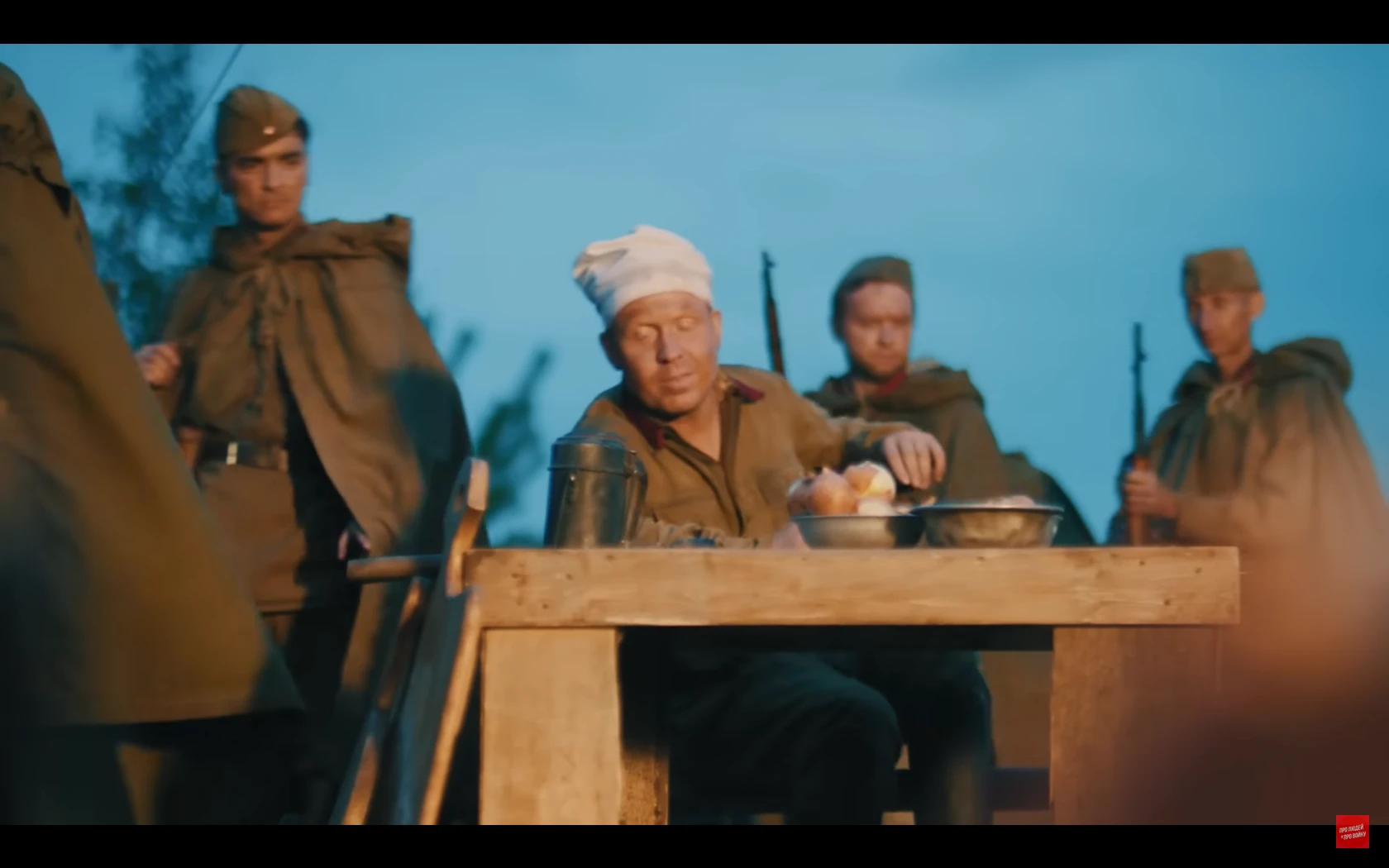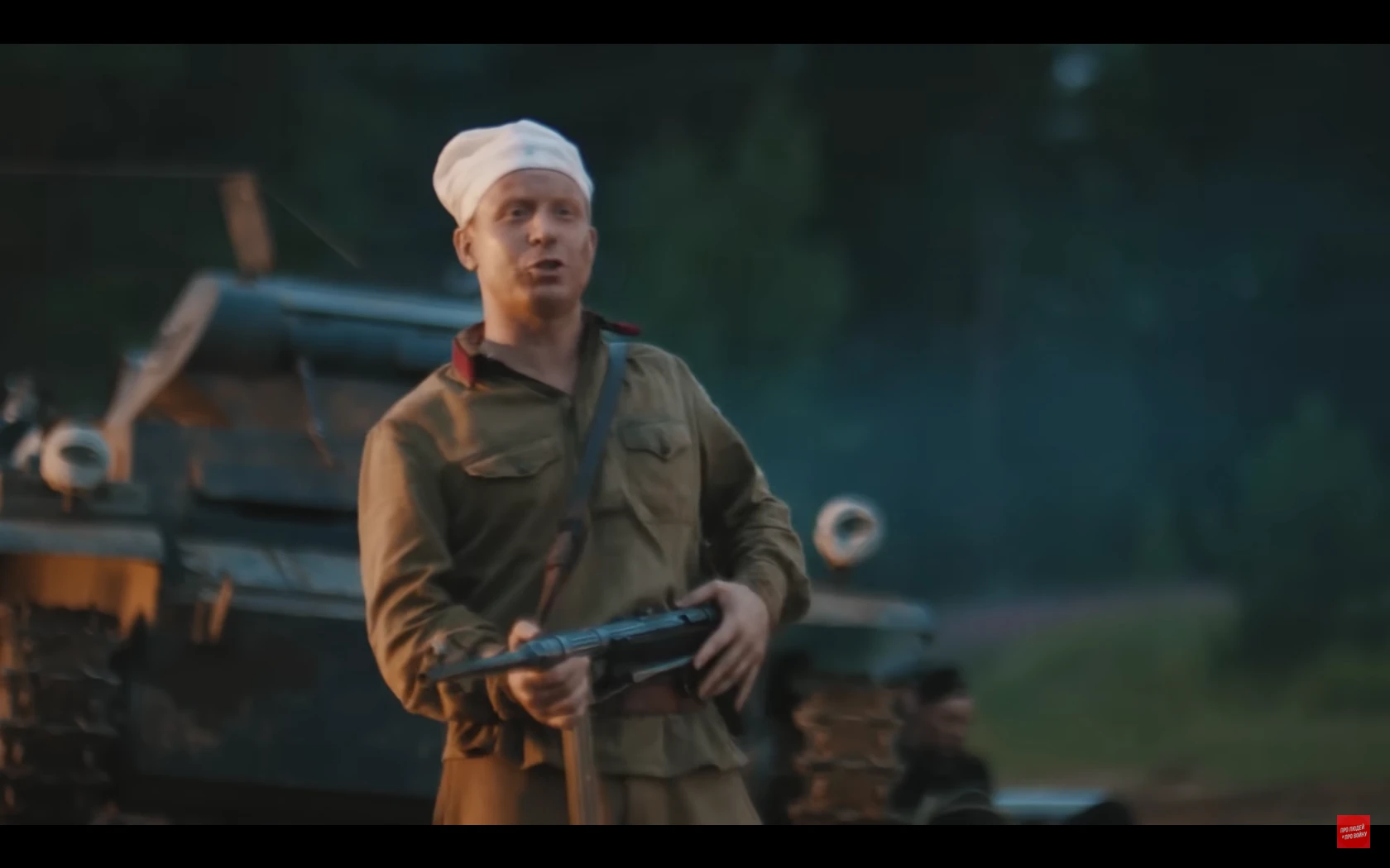 많이 스킵됐는데 저 취사병이 앞치마로 조종수 관측장 덮어서 시야 차단해버리는 바람에 전차가 천막 뒤집어씀전차장도 천막때매 시야 확보 안되고 취사병이 마치 다른 병사들 여럿 있는것처럼 사람이름 부르고 소리치고 쿵쾅대고 건초 태워서 맵게 하고 하니까 전차병들이 지레 겁먹고 항복한 거