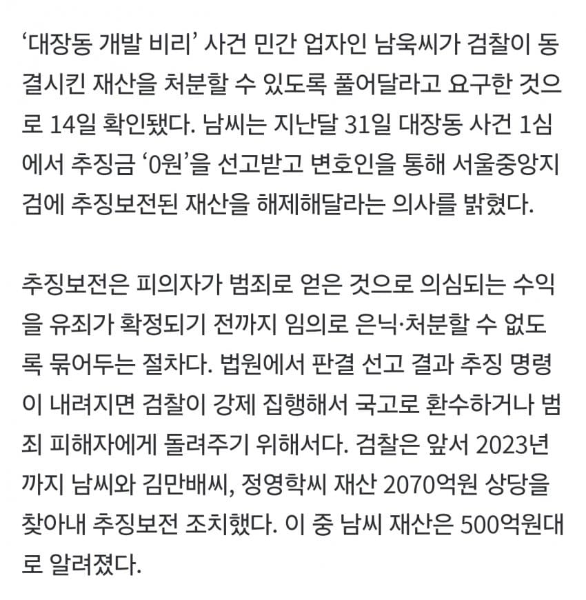 남욱 추징보전 해제 요구