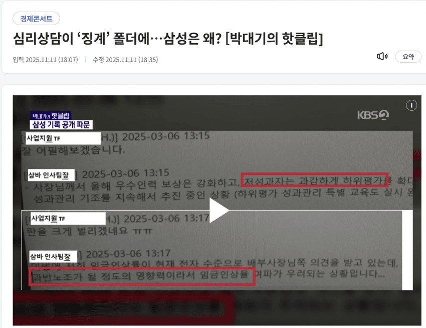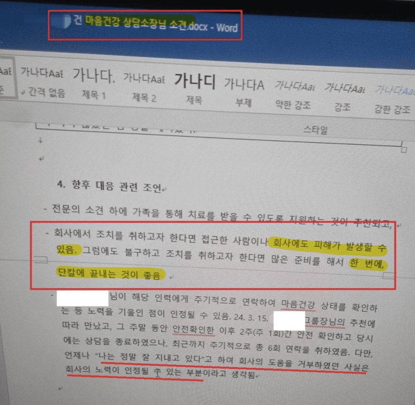 사내 심리 상담을 받으면 징계 대상으로 지정
