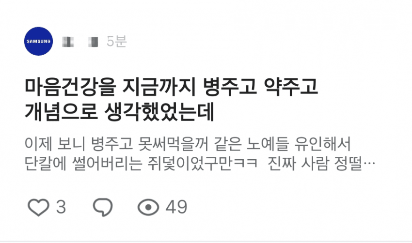 정신적으로 힘들면 심리 상담 받으라고 한 다음
