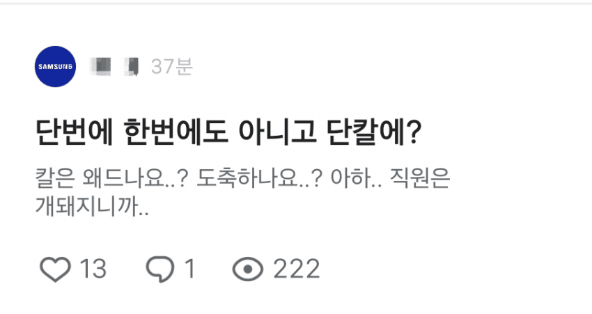 또 하나의 가1좆 삼성께서 일을 거하게 쳐버림