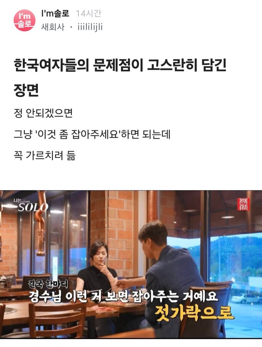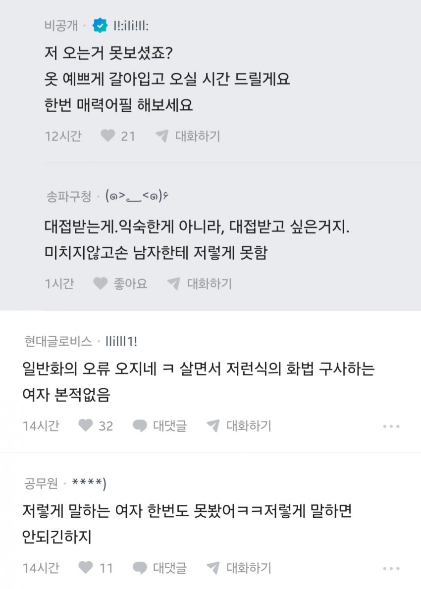 남자가 모쏠이나 연애고자로 보여서 지가 여자를 매너를 가르쳐야 된다 싶은가 보지 아예 관심없으면 가르치기나 하겠나 키워서 가스라이팅해서 먹으려고 하는 거지 글머 남자가 잘났거나 성질 더럽거나 말 안 듣고 엇나가는 거 보여 주면 해결됨 벌벌 떠받들지 말고 개무시하거나 피식 비웃거나 여자를 제압할 뭔가가 있으면 꼬랑지 말게 되지