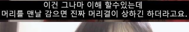 우리나라가 유독 많이 씻는 문화임.미국인들도 매일 씻는 애들 없음. 오히려 2일 3일에 한번 씻는게 건강에 좋다는 연구도 있음 ㅇㅇ.흑인 애들도 거의 1주일에 한번 머리감을걸