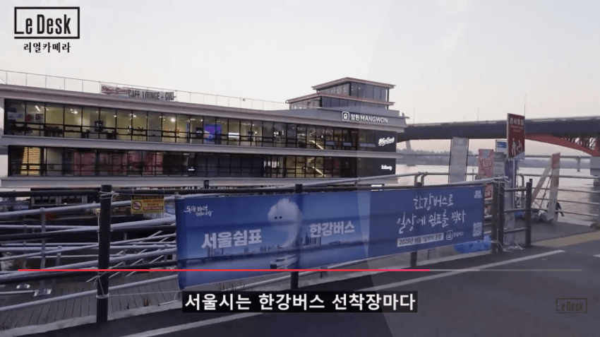 그냥 오세훈이 해먹으려고 만든거야. 애초에 저걸 누가 타고 출퇴근함??? 저거 타고 갈 시간이면 이미 집 도착하고도 남음.. 오세훈 이제는 출퇴근 교통수단 용도는 얘기도 안하고 대중교통이 꼭 빨라야되나요? 이러더라.. 거기다 저거 적자 메꾸려면 선착장에서 식음료 엄청나게 팔아야함.. 선착장에서 치맥팔아 수익내서 적자 해결하겠다는게 무슨 대중교통임? 유람선이지