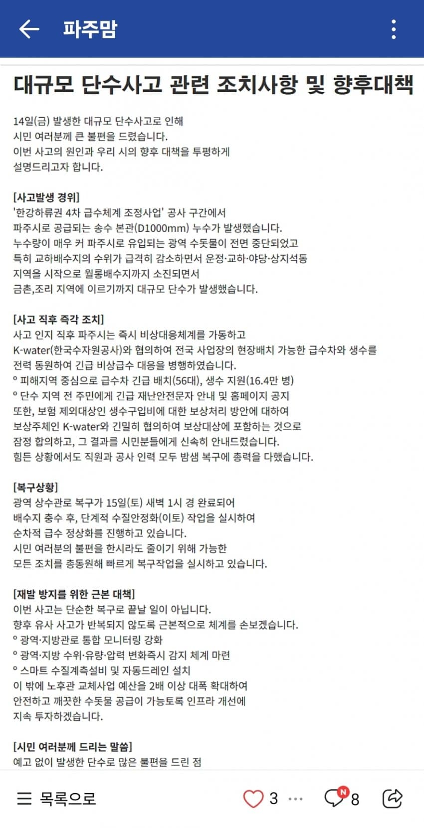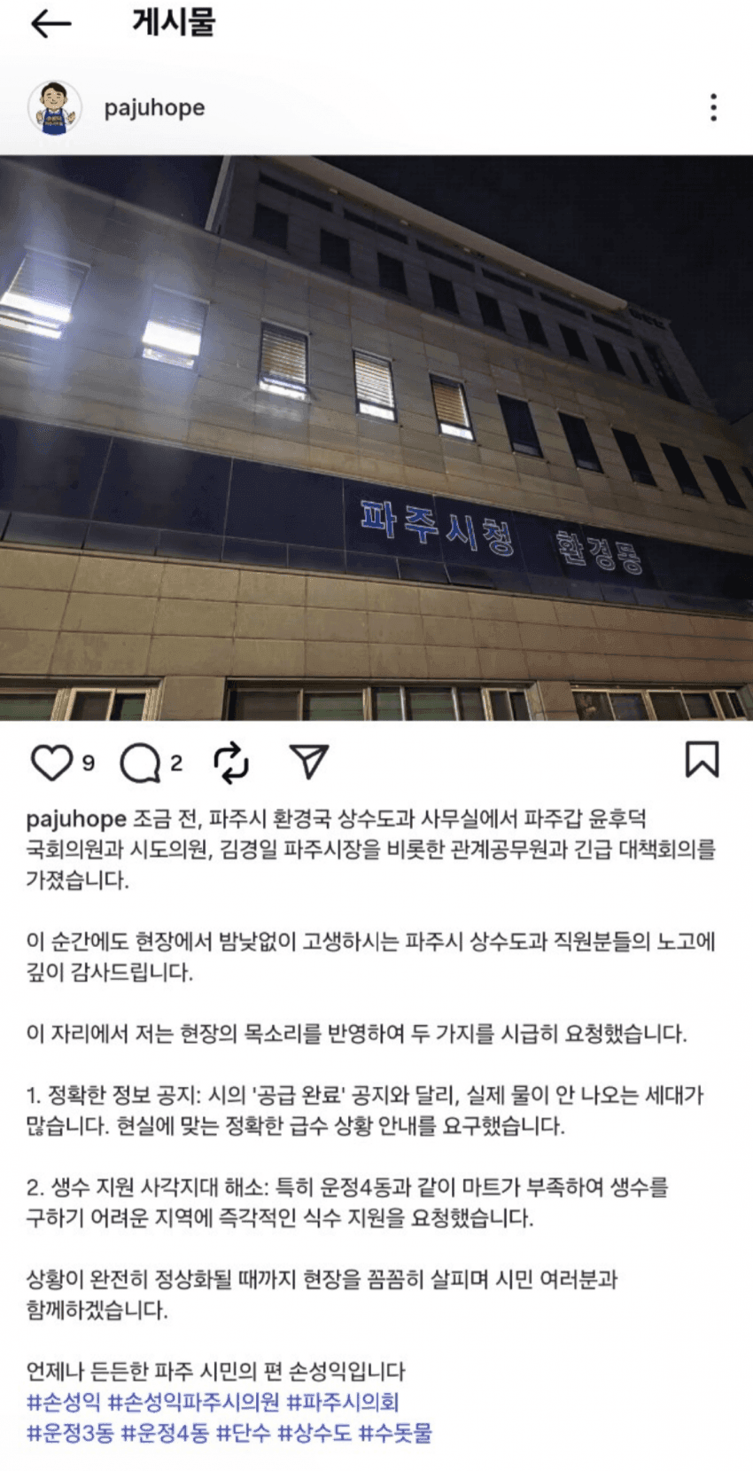 파주 식수가 북으로 가나보네?파주시면 박정 지역구 아닌가