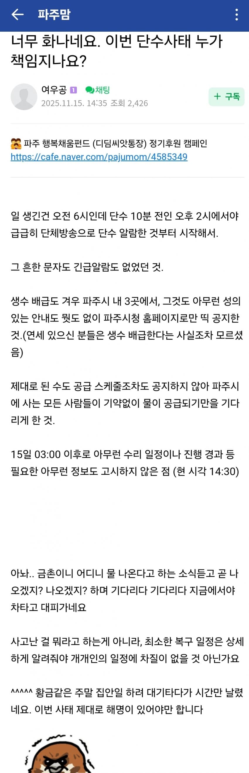진지하게 저동네 한 30일 단수되도 mbc에서는 보도 안할듯
