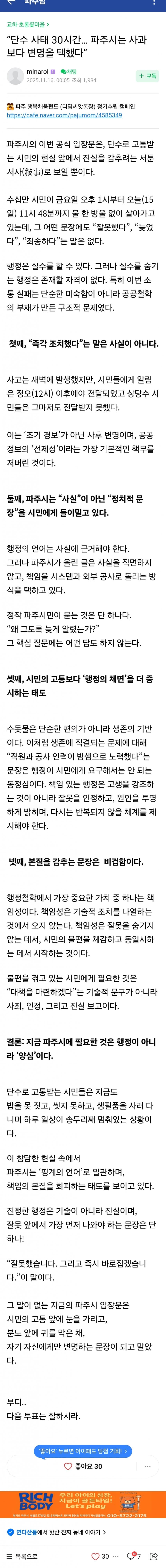 메롱이다 파주 ㅄ들 ㅋㅋ 죽어라 민주당만 쳐찍더니 꼴좋노